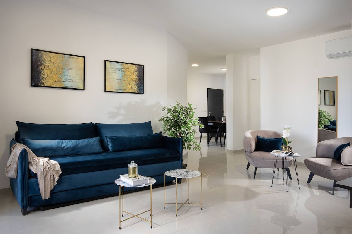 Unwind in this chic 4th-floor apt (walk-up) with country-modern style. Steps from Haifa's Baha'i Gardens (UNESCO site!), it offers comfort & location. Relax in the light-filled living area, cook in the kitchen, or unwind in the hot tub after exploring. The bedroom provides a peaceful escape. Haifa's culture awaits! Explore the Gardens, savor cafes, or delve into heritage centers. Mingle at nearby pubs. This Haifa gem offers an unforgettable stay. Book your getaway today!