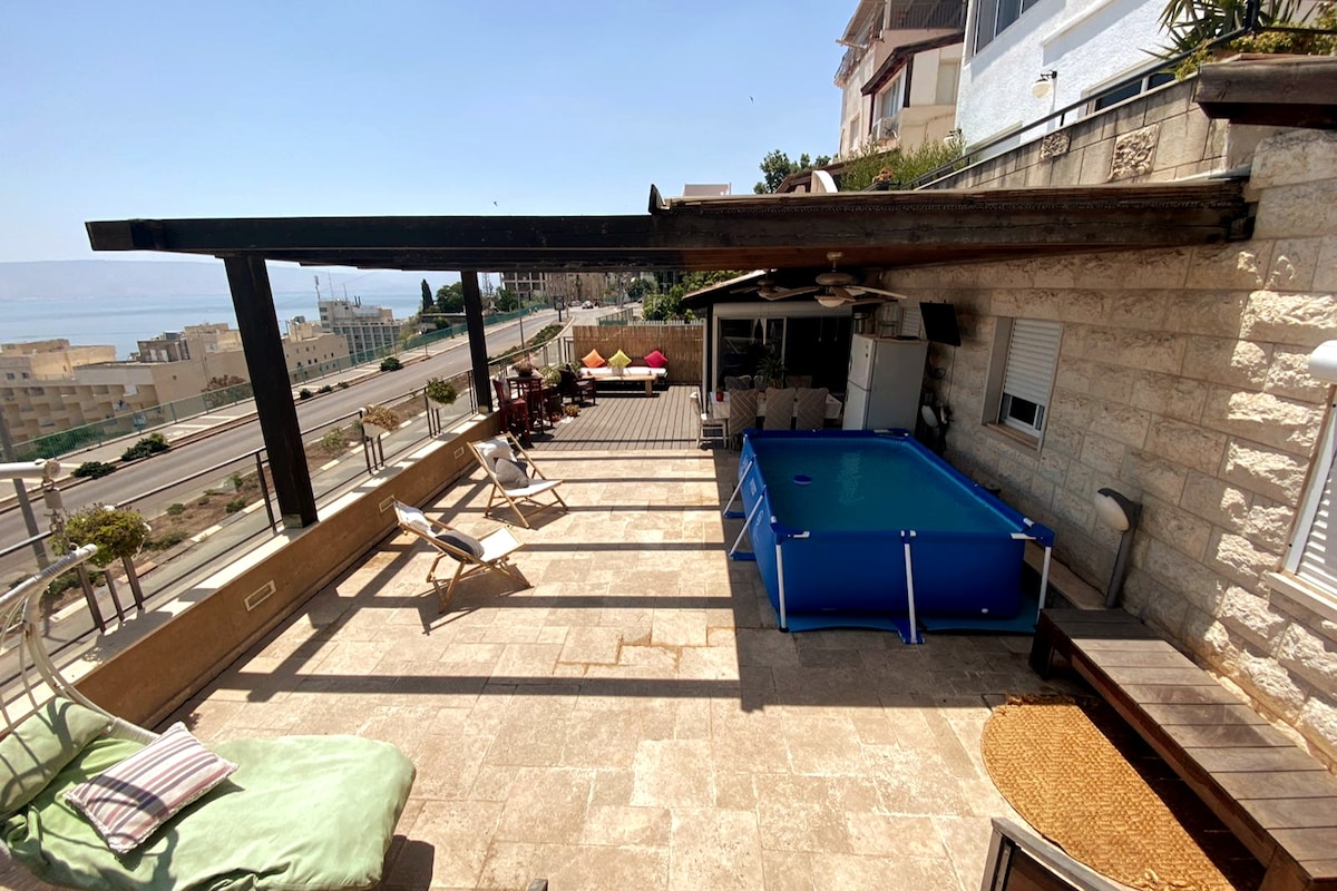 *There is a security room in the apartment* The perfect apartment for your vacation for couples or families A huge balcony with a bubble bath overlooking a spectacular and breathtaking view Snooker table, air hockey, table tennis and poker Netflix, FreeTV & games console Fully equipped kitchen with everything you'll need for a short or long stay. A new apartment designed to a very high standard The apartment is located at Migdal vilige. 5-10 minutes drive to Tiberias and the Sea of โโGalilee