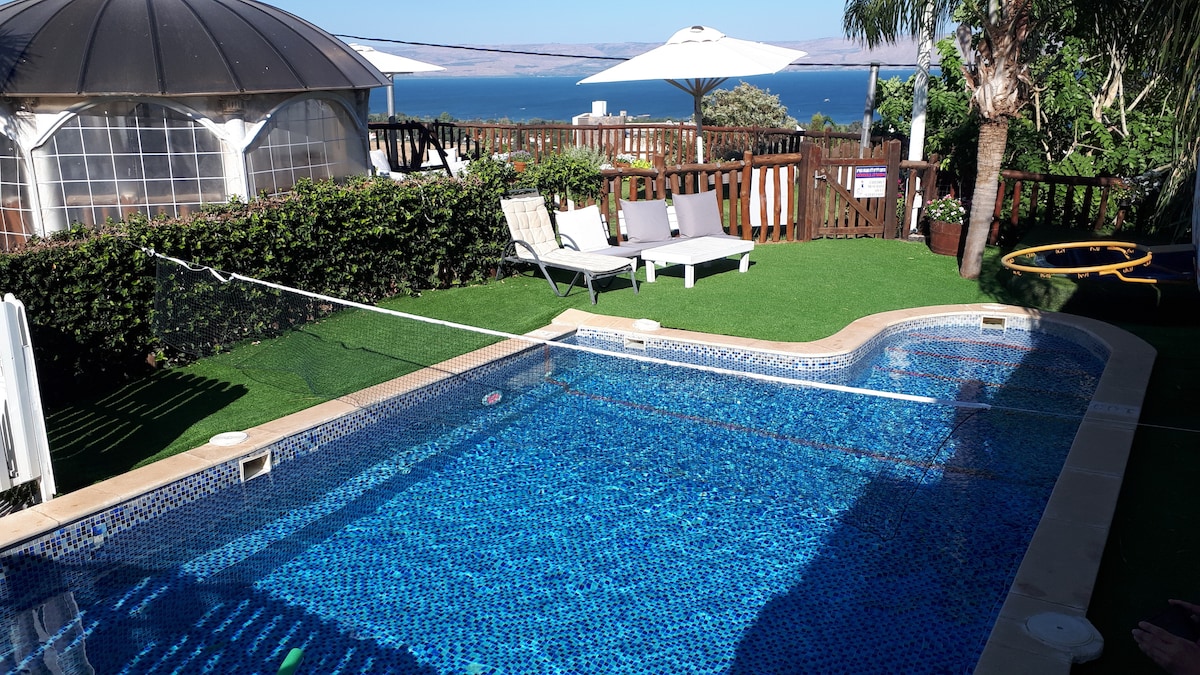 Welcome to Magdala Suite - a deluxe escape with a jet-stream pool and stunning views of Mount Arbel and the Sea of Galilee. The suite includes a cozy living room with a fold-out sofa, a fully equipped kitchen, a master bedroom with balcony and en-suite bathroom, an additional bedroom, and a terrace with a private pool Ideal for couples and families seeking comfort and relaxation in Northern Israel. Enjoy peaceful mornings, fresh air and a calm setting minutes from Galilee for a true Galilee stay