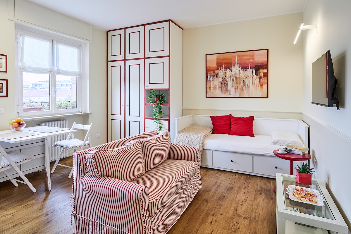 In tipica casa di ringhiera Vecchia Milano, un accogliente bilocale luminoso e molto tranquillo. Distante cinque minuti a piedi dalla fermata della metropolitana, in prossimità della Fondazione Prada e di diversi ristoranti e pub. L’appartamento è ben organizzato: il living con angolo pranzo, spazio lavoro e comodo divano letto; la camera con letto matrimoniale e scrivania. Lo spazio all'aperto piacevole per rilassarsi godendo della tranquillità del cielo e dei tetti. Wifi molto veloce: 420 mbps