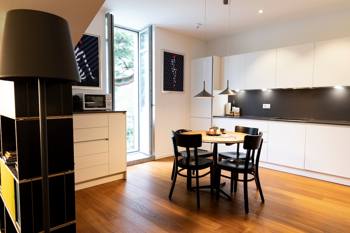Experience THE LOFT in the heart of Lugano! In a superb location, few minutes’ walk from the lake, the new cultural center LAC and city center; railway station and highway are in the nearby. FREE parking available. Located in a luxury building, with private entrance, you will find a modern bathroom with shower, a last generation fully equipped kitchen, one double bed + sofa bed, large terrace with a relaxing view, free fast Wi-Fi and everything needed to make you feel comfortable.