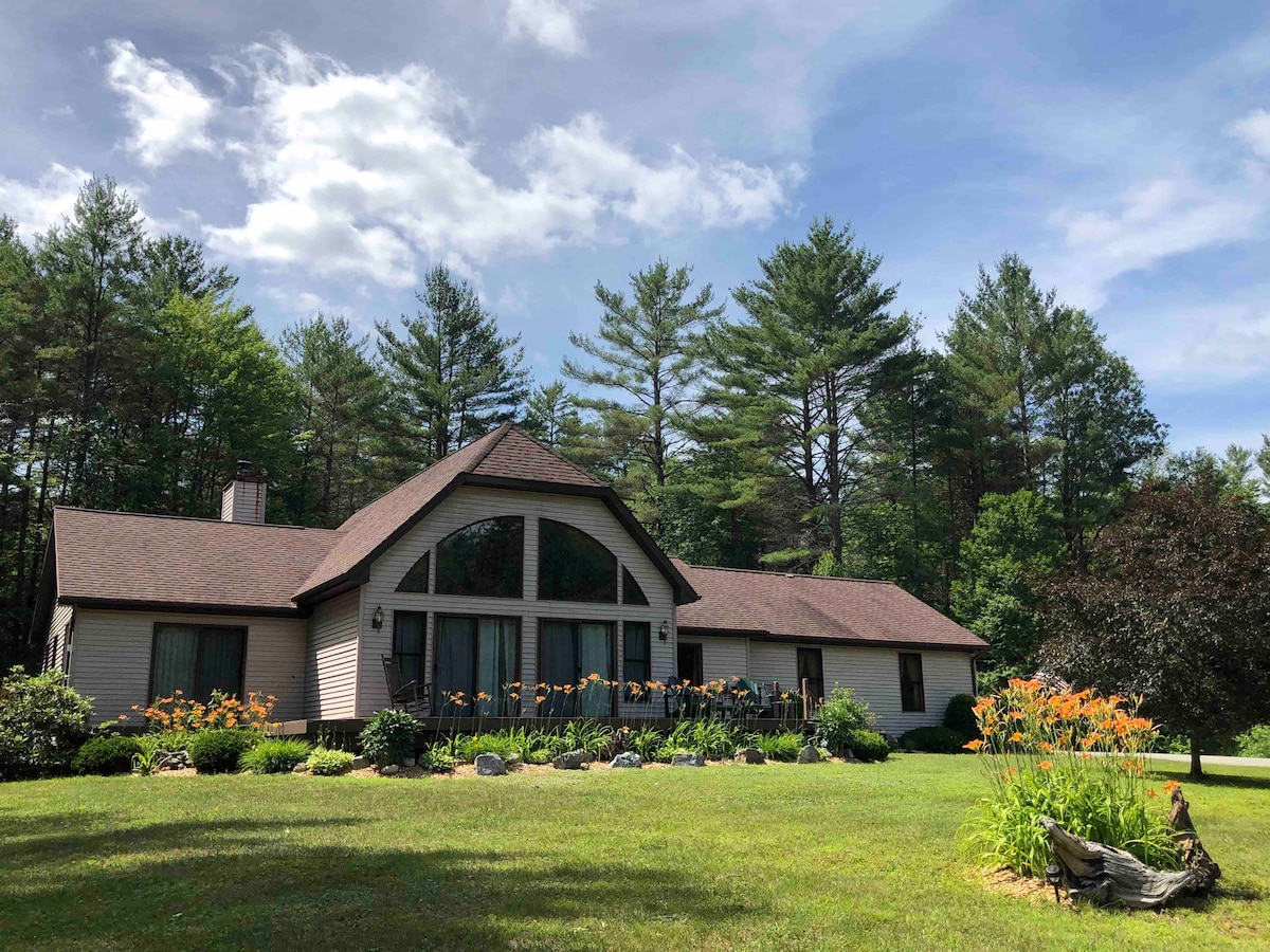 As featured in Conde Nast Traveler (1/21/22) Peaceful & impeccable retreat with a 180 degree view of Vermont's tallest mountains. Near Vermont's premier skiing, hiking, & outdoor adventures, you’ll love the sunset views and cozy atmosphere (huge sheepskin in front of the fireplace) and the attention to detail (live-edge wood details, spa-like bathroom). This is an incredible retreat for couples and families, adventurers and business travelers alike!