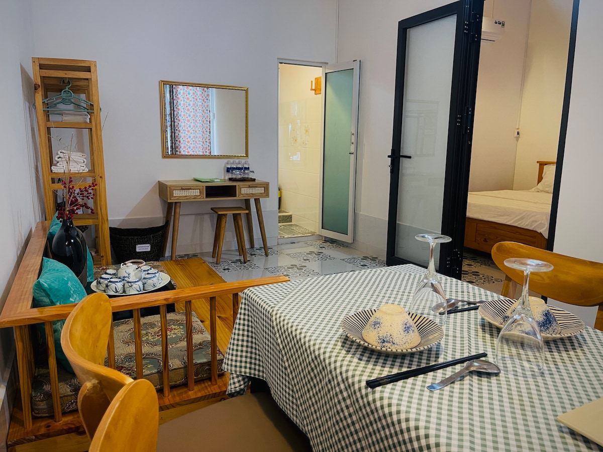 Relax with the whole family at this peaceful place to stay. The only studio apartments in a quiet gated community surrounded by coconut trees. Located between 2 markets, Huu Dinh Market and Tu Dien market, each within a 2-minute drive. Close to Ben Tre Bus Station and local police station. Has air-conditioning and water heater. Free wifi. Meals and Laundry service offered.