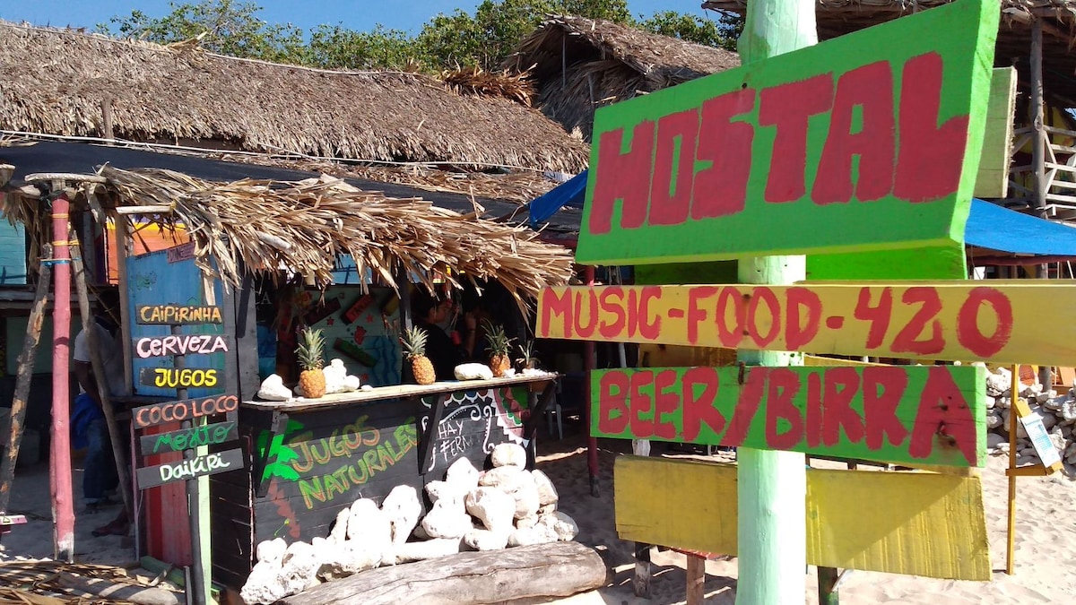 Disfruta de la cabaña frente a la playa en una isla, con su hermosa playa y su magnifica visita a la cd. de Cartagena. solo a 10 min en bote de cartagena.