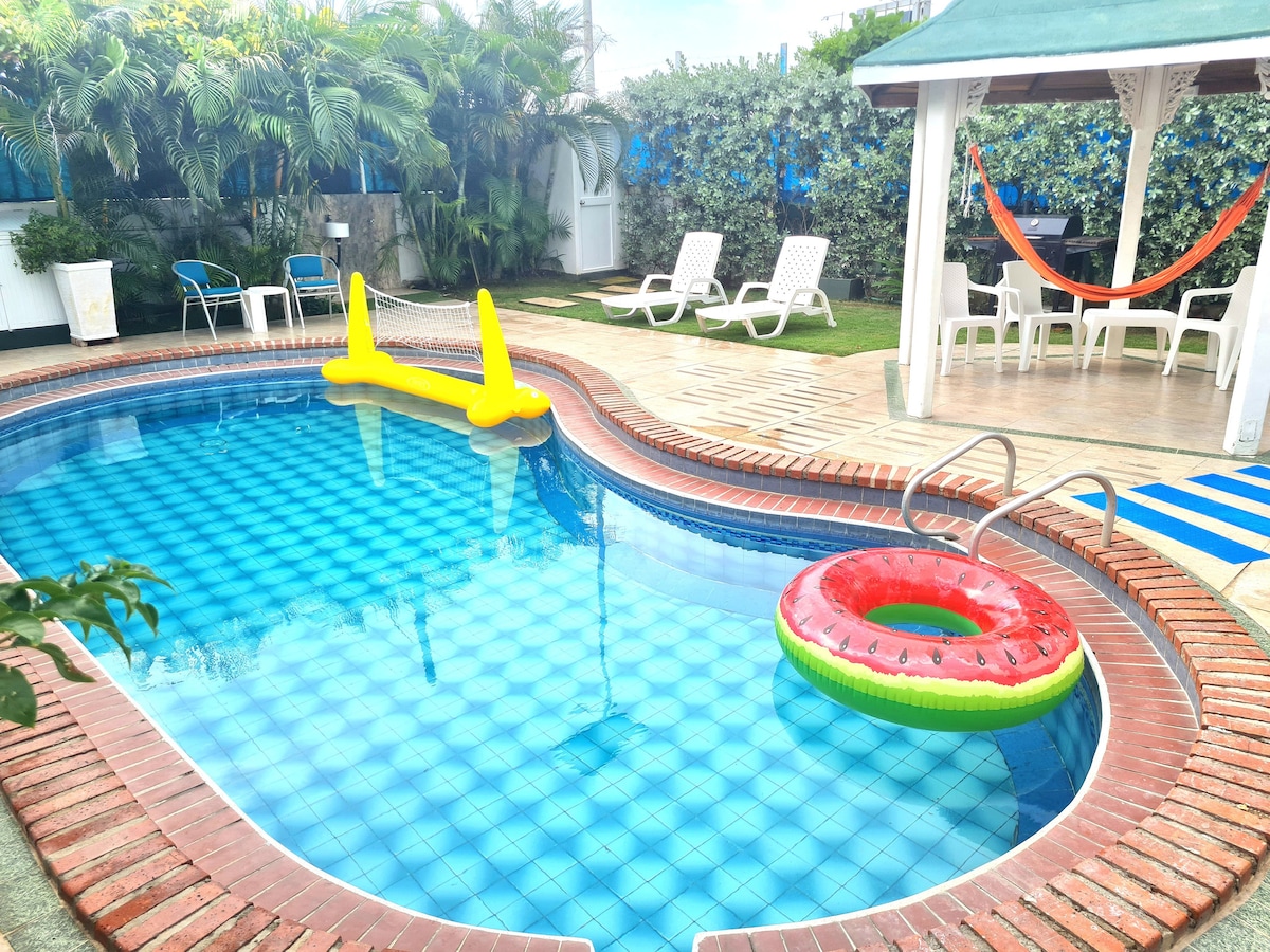 Nuestro Chalé se encuentra en Turbaco Bolívar, a media hora de Cartagena y aproximadamente a una hora de la playa, allí encontraras un lugar tranquilo donde podrás relajarte en medio de la naturaleza, donde verás una gran diversidad de animales, la migración de aves y los aullidos de los monos; además desde la piscina privada tendrás una bonita vista de la bahía de Cartagena, justo lo que necesitas para olvidarte del bullicio de la ciudad.