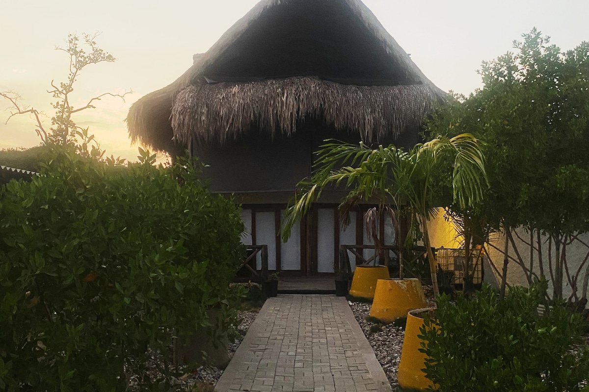 Relájate con toda la familia en este tranquilo lugar para quedarse. Cabañas en una isla frente al mar a 15 minutos de la ciudad de Cartagena. Lugar tranquilo y con mucha privacidad. -Wi- FI -Kayaks -Asoleadoras -Fogatas -Mesa de Billar -Parque para niños ¡Conéctate con la naturaleza!