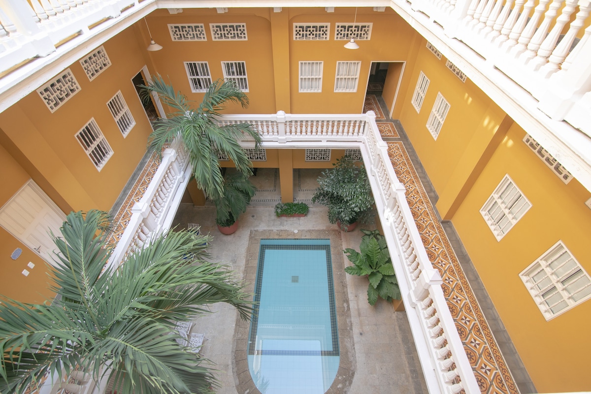 1 block from the Cathedral, this studio is in the best location possible. Set in a restored 18th-century mansion—now one of Cartagena’s top boutique buildings—it has a pool in the courtyard, a rooftop jacuzzi, and that quiet elegance everyone looks for in the walled city. Inside: A/C, fast Wi-Fi, hot-water shower, and hotel-quality linens. Step outside: cafés, plazas, and all of Cartagena at your doorstep.