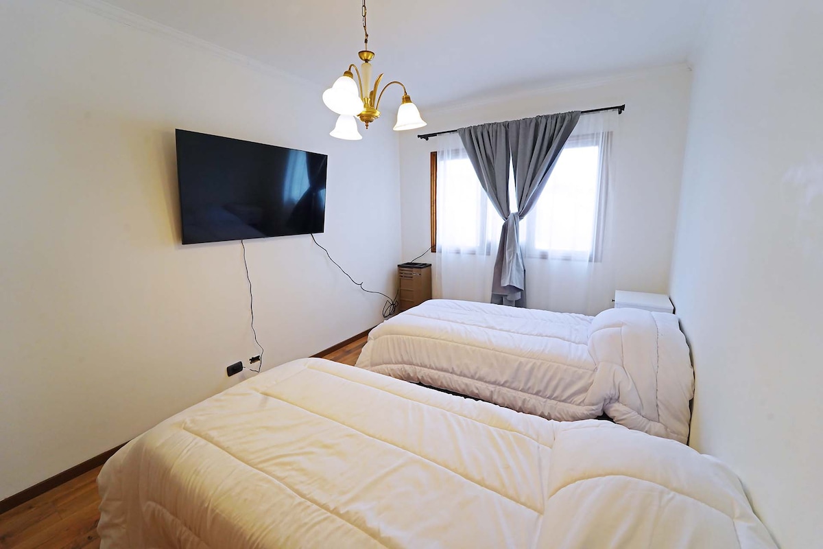 Relájate en esta escapada única y tranquila en este departamento con vista abierta, luminosa, con toda la comodidad para pasar unos días increíbles. Con una ubicación estratégica, a 10 minutos del aeropuerto, cerca de del supermercado Carrefour, hospital, clínicas, negocios, paradas de taxi, todo a menos de 200 metros. Comodamente se puedei r a pie a la avenida principal que queda a 900 metros todo por calles llanas. El departamento se encuentra en un 4 piso, con ascensor y cochera propia.