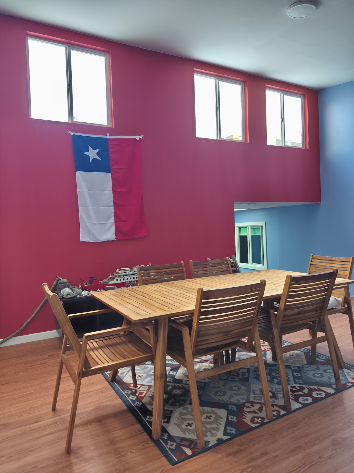 Incredible house in front of the Strait of Magellan, only 4 km from downtown Punta Arenas, in an urban area, but very quiet. More than 3000 m2 of land with areas to make fire, barbecue area with pool table, ping-pong and fireplace for barbecues and grills. The yard is very spacious, with parking for several cars, swings and trails to contemplate the famous Strait of Magellan. For large groups and families who wish to be very comfortable while visiting Patagonia.