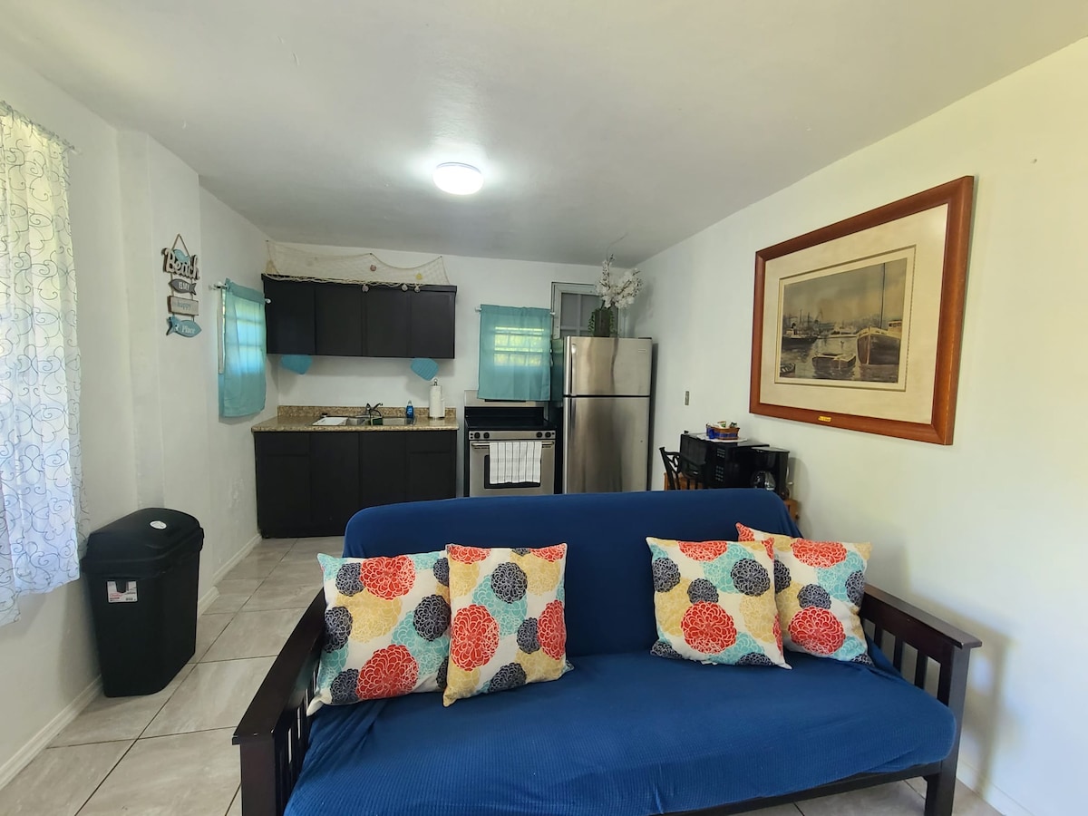 Hello Guests! This is a place located in the heart of Manati. It includes 1 bottle of wine of our choosing to welcome you for the stay. It counts with 30 solar panels and 3 Tesla batteries; ready for any unexpected outages! It is 3 min drive from one of our unique and hidden gems, Mar Chiquita Beach; 7 min drive to Cueva Las Golondrinas Beach/Cave. Additionally, we are close to many other beaches around like: Los Tubos, Puerto Nuevo, La Esperanza Beach and all of them within short drive. 😊