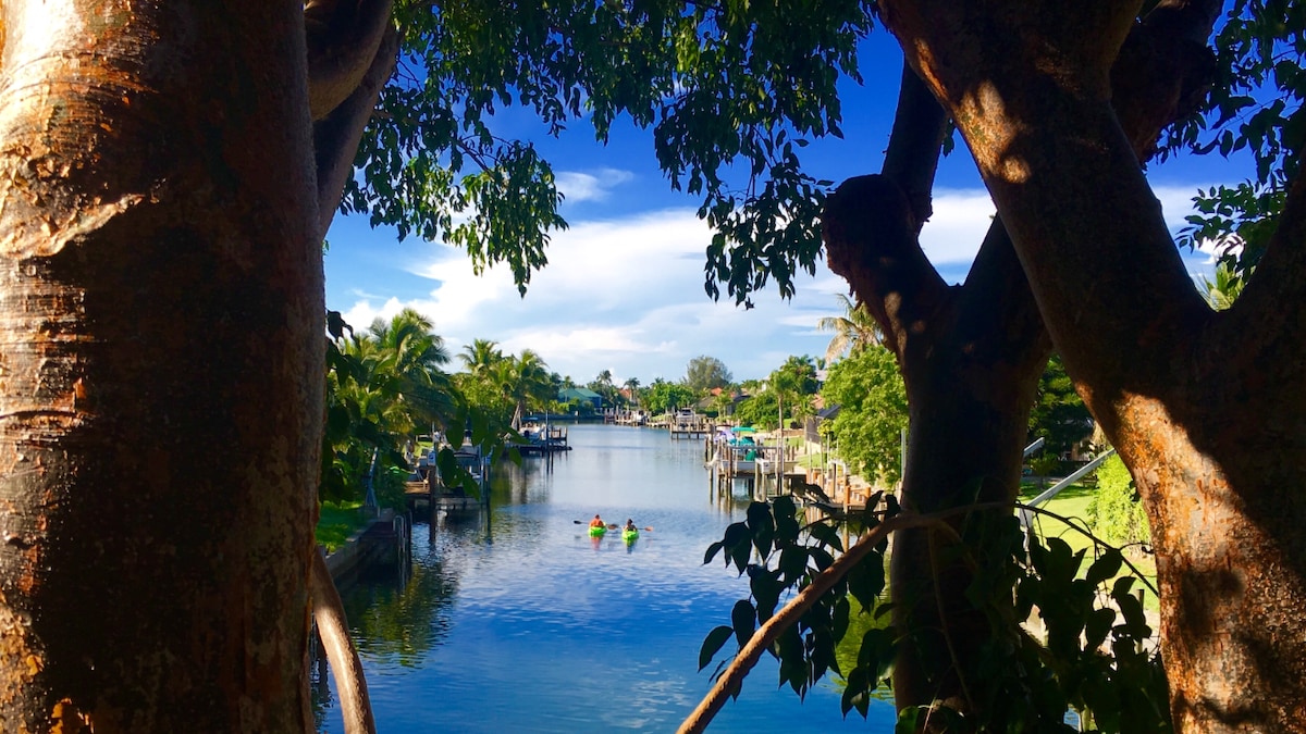 Unique Waterfront Condo & Gorgeous Intercoastal Views, Wildlife, Fishing, Boat Dock. One block from Snook Inn! Adjacent Pool Steps Away from Back Patio. NEWLY REMODELED! Pool & Patio Overlook Beautiful Waterfront, Dolphins, Manatees, Exotic Birds. Main Floor with no steps. If you love water and WILDLIFE, this place is for you! Fishing on the dock-Fishing Poles and Tack Supplied, pull your boat right to the back door. TONS of wildlife. Dock is lit at night, watch the sea life! NON SMOKING UNIT