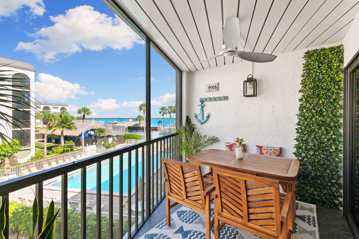 Surrounded by swaying palm trees & tropical breezes, enjoy assigned undercover parking, screened lanai overlooking pool & bay, luxury comforts for five (king bed, queen pullout, twin pullout), equipped kitchen & bath, mini bar, coffee bar with tea & coffee, vanity/work station, two 65” TVs, beach chairs, umbrellas, towels, totes, cooler, wagon, sand toys, Bluetooth speaker, WiFi, pools and hot tubs, tennis, on-site restaurant. Walkable to restaurants, bars, fitness studios, shops, Rose Marina.