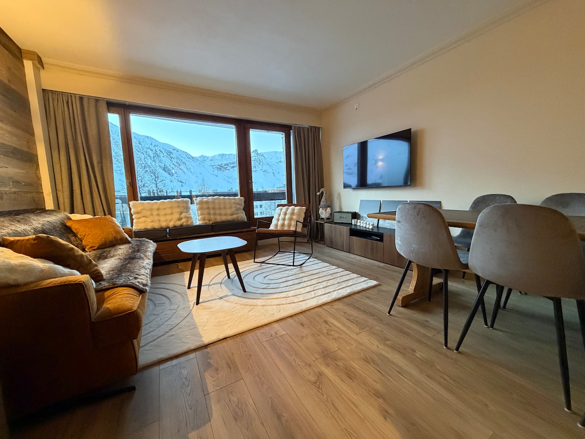 Our apartment for 7/9 people, is located in the residence, Les Suites du Val Claret. Its 7 charming apartments welcome you in winter and summer in a warm and comfortable setting, thanks to a refined decoration combining wood and mountain design. Accommodating 7/9 people, this apartment has all the comforts and charm for the success of your holiday.