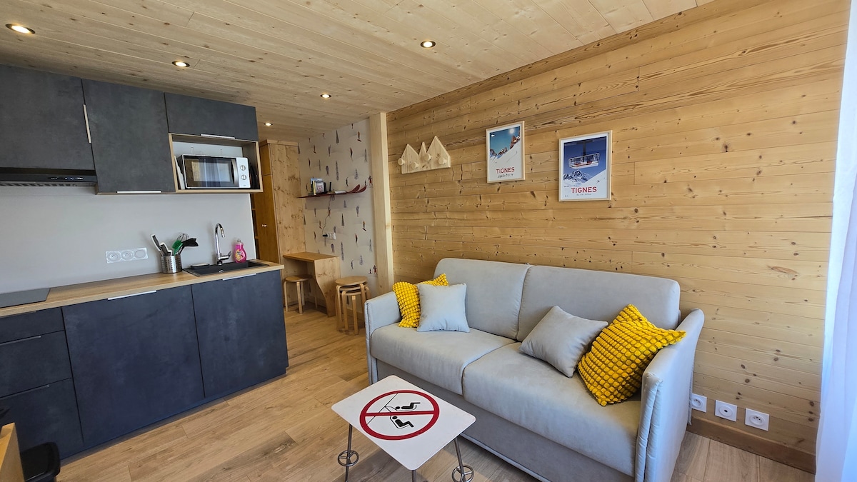 Charmant petit studio équipé pour 2 personnes. Situé à proximité de tous commerces à Tignes Le Lac. Proche des remontées mécaniques l'hiver et des sites d'activités l'été. Adeptes du grand air ? Que vous soyez skieurs ou non, seul ou accompagné, venez profiter des multiples activités et animations proposées par la station.