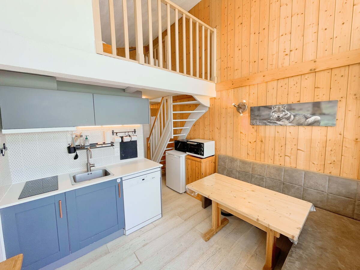 Studio cabine refait à neuf de 17m2, idéal 2 personnes, mais peut accueillir 4 personnes Il dispose de 4 couchages, un canapé lit double dans le salon, et 2 lits escamotables dans l'entrée A 2min à pieds des remontées mécaniques(150m) et proche de tous commerces, un arrêt des navettes gratuite est juste en bas de la résidence L'appartement dispose d'un lave vaisselle, cafetière, grille pain et bouilloire, ainsi que d'un casier à ski Les draps, serviettes et le ménage sont compris Wifi gratuit