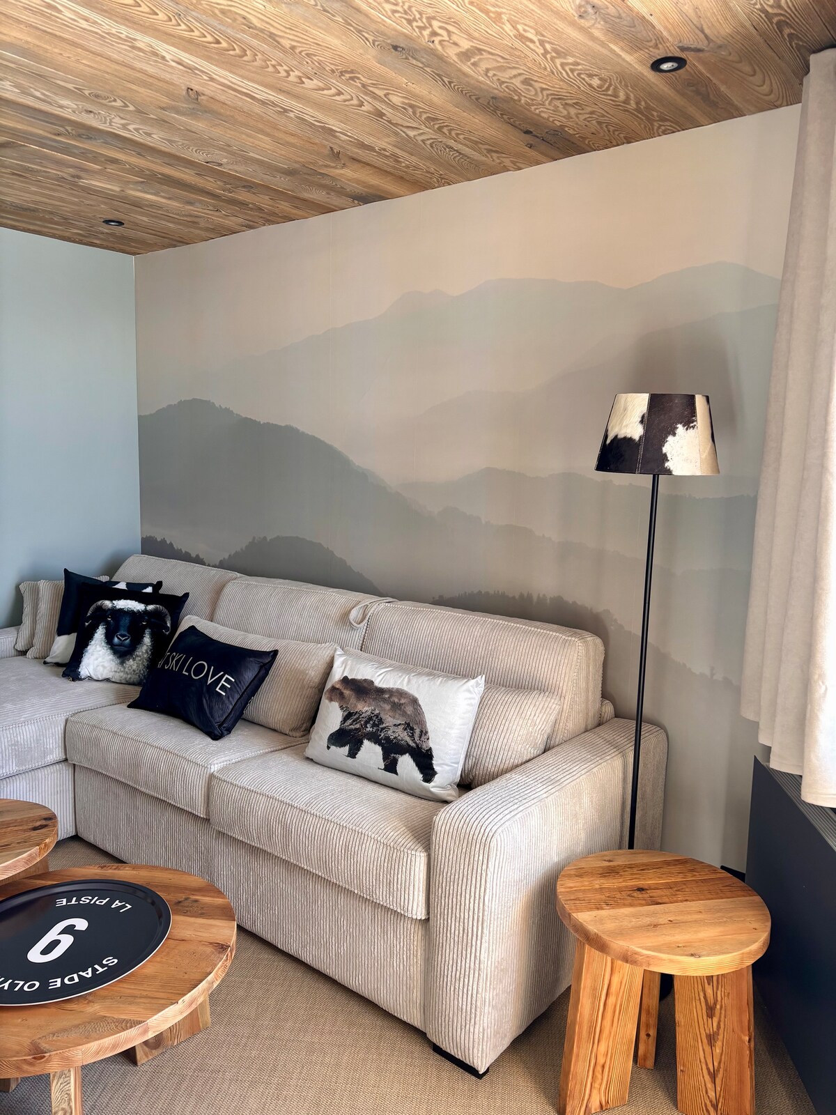 Tous les membres du groupe se sentiront chez eux dans ce logement spacieux et unique : environ 80 m2 exposition sud ouest, skis au pieds. Bel espace à vivre avec canapé lit, cuisine américaine toute équipée. Vue imprenable sur les pistes de ski l’hiver et sur le golf l’été. Petite terrasse aménagée : table et 6 chaises. 3 chambres avec chacune leur salle de bain et leurs toilettes (sèche cheveux, sèche serviettes) Buanderie : lave linge, sèche-linge casiers à skis (sèche chaussures) local vélo