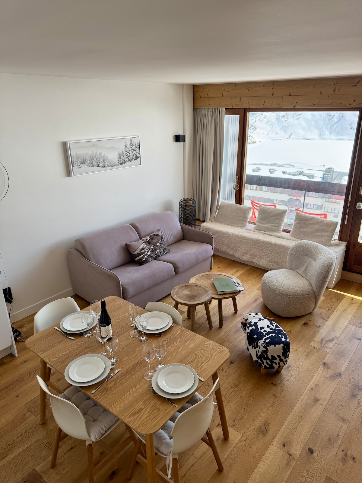 Come skiing/ snowboarding in one of the few snow sure resorts & access to one of the biggest ski areas in the world (lifts are 200m away). Snow sure from December to early May, with the height of the resort being 3456m. . Experience the unique village life of Tignes 1550, and enjoy the comfort & warmth of your own chalet after a hard day on the slopes! The chalet is modern, comfortable with high vaulted ceiling in the living room. Also come in the summer to experience the beauty of the Alps