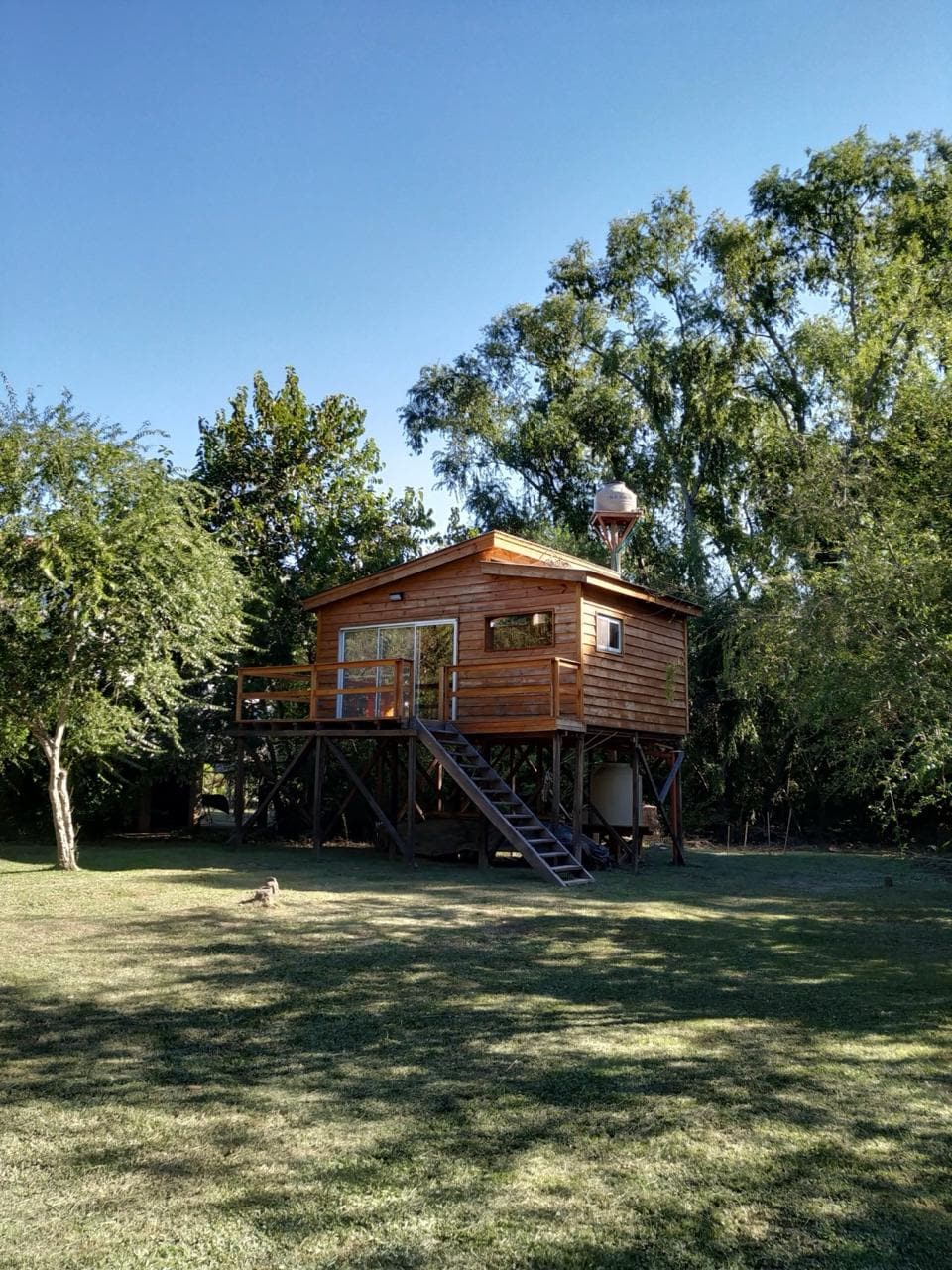 New cabin on the Delta islands with river, park and beach coast. Made in wood, with large windows to enjoy the island's foliage. It is reached by Interisleña collective boat from Tigre in 60 minutes or taxi-boat (30 minutes) to the pier itself. It has a bedroom with double bed, high density mattress, full bathroom, living-dining room with integrated kitchen. It has covered terrace with deck floor and outdoor furniture. Equipped for two people. Wifi, 2 airs split cold-heat, grill.