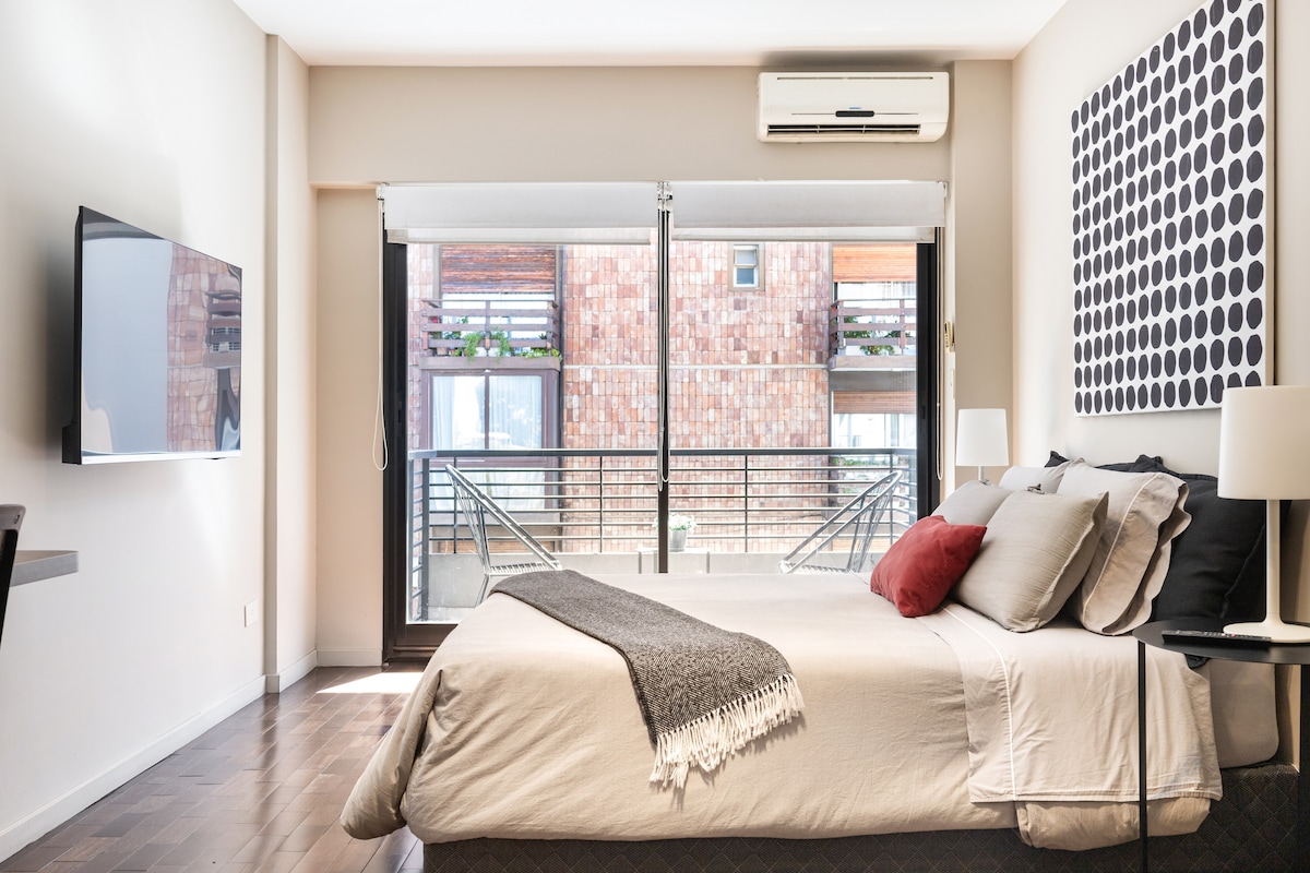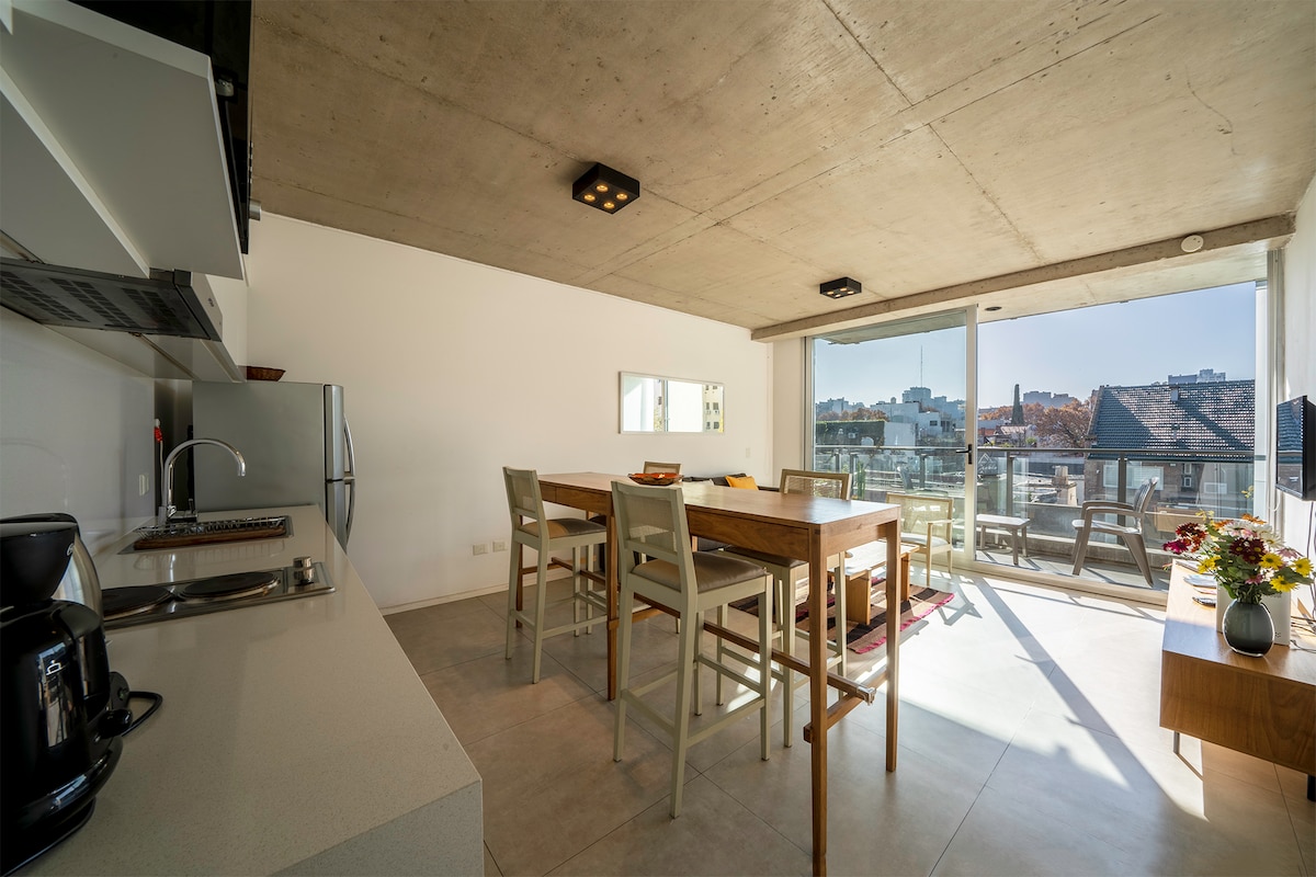 Unique Stunning loft to enjoy trendy neighborhood of Palermo and feel at home. It is a very bright apartment, fully equipped and in a modern building with Premium amenities. Common Areas such as stunning terrace pool with an incredible view of Buenos Aires, outdoor seasonal pool on the ground floor with a beautiful garden, plus equipped gym and 24 hour security. Central Location in the heart of Palermo Hollywood walkable to a unique offer of incredible restaurants, bars and cafes.