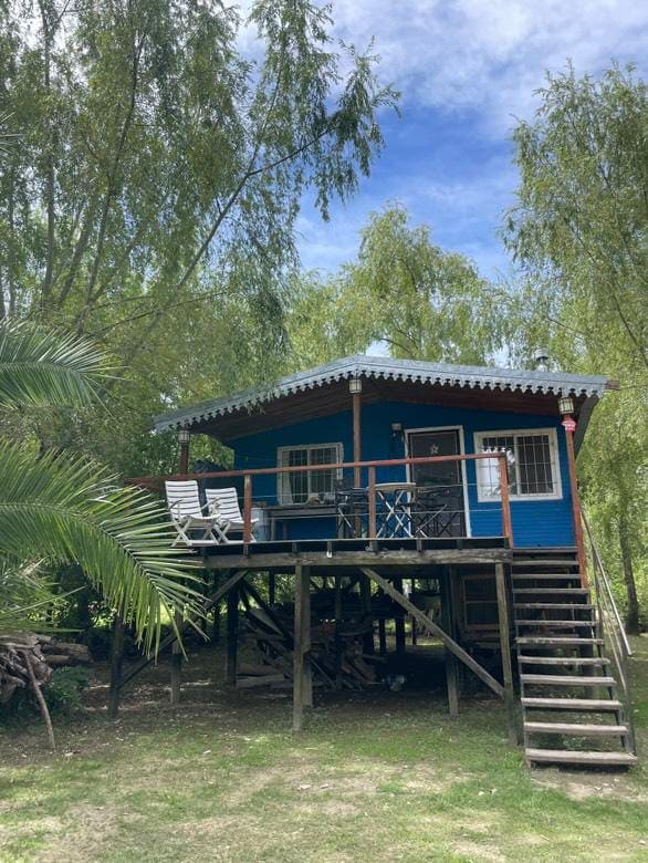 Cabaña en isla del Delta, con vista al río Sarmiento. Muelle. Decoración cálida, de buen gusto, alegre y muy luminoso. Vista al río desde el interior de la casa y deck. Parrilla. Zona muy tranquila, y super segura. Aves y fauna silvestre Directv Parque iluminado se pueden alquilar Kayaks a unos metros de la casa para pasear por la zona que es hermosa Almacén a 50 metros y restaurants. Senderos para caminar por arroyos internos Pasa lancha almacén! Se llega en lancha colectiva o lancha remis.