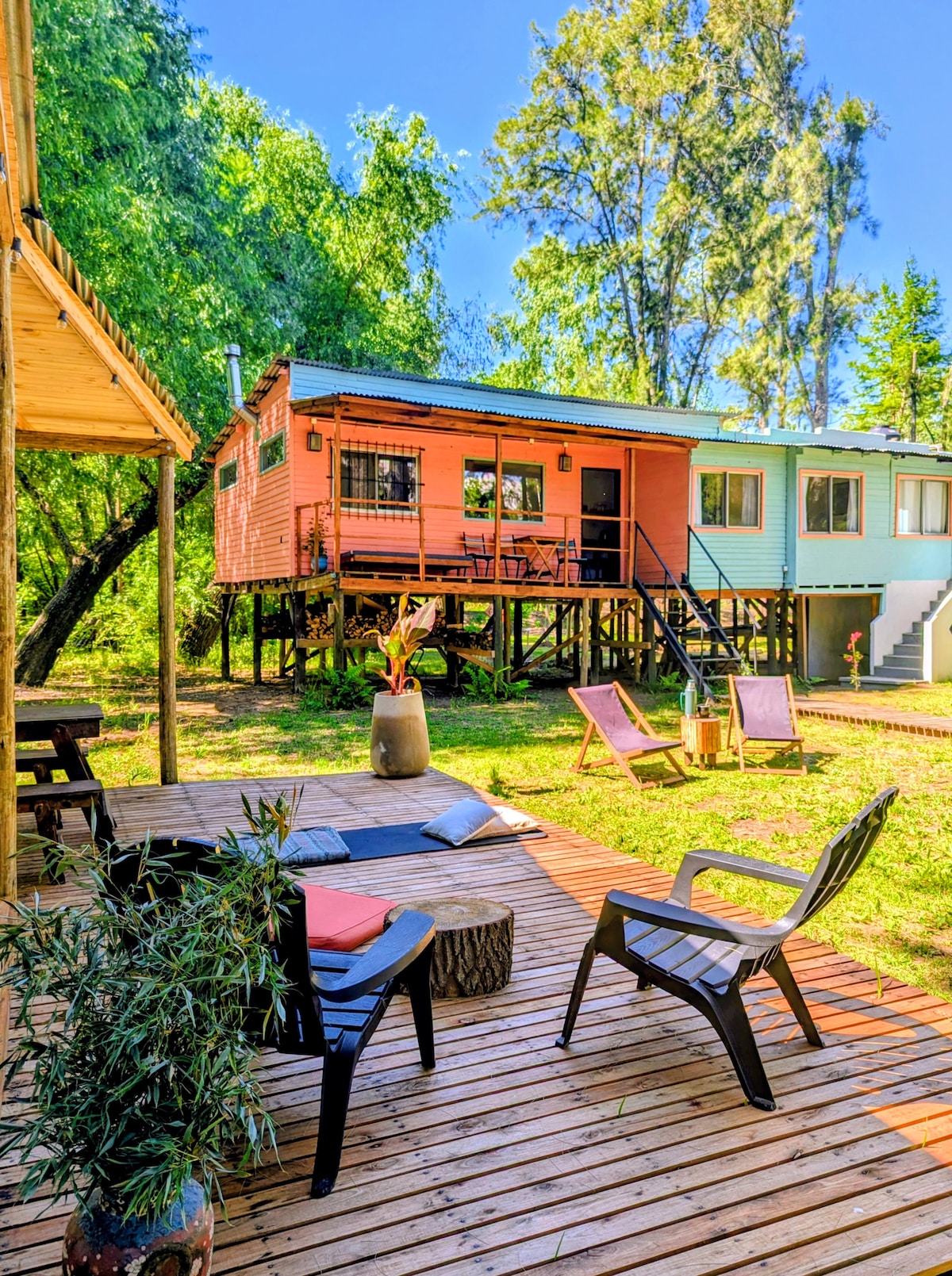 Cabure is one of the two cabins on a property of over 1,200 square meters, featuring a private dock 20 meters long with a deck where you can relax and enjoy. Just a 15-minute boat ride from the Tigre train station, you can unwind in a deck chair or hammock, listening to the birdsong, feeling the breeze rustling through the willow trees, and soaking in the energy of the ancient Paraná Delta. Located on the impressive Río Sarmiento, you can easily arrive by public boat without much walking.