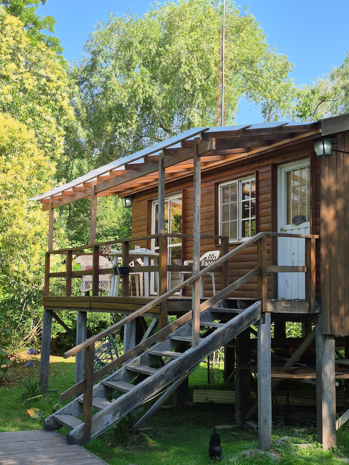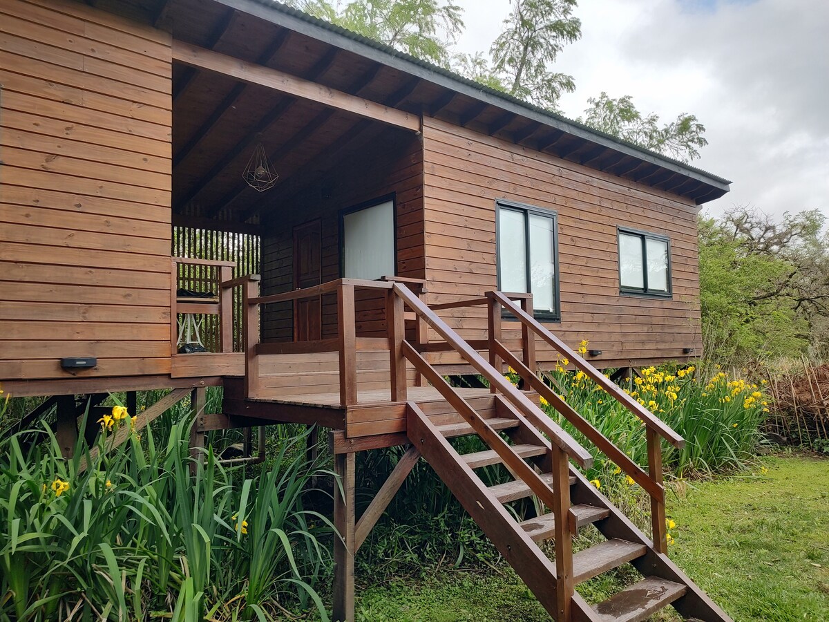 ANANÁ Cabin – hippie chic style in the Tigre Delta, just 20 minutes from the city. Located on the peaceful Rompani Stream, surrounded by nature, it features a private dock ideal for relaxing, swimming, or watching boats and rowers pass by. includes a grill. Ideal surroundings for senderism or kayak ride! Just 100 m from the public boat stop (hourly service) and 100 m from a grocery–resto bar.