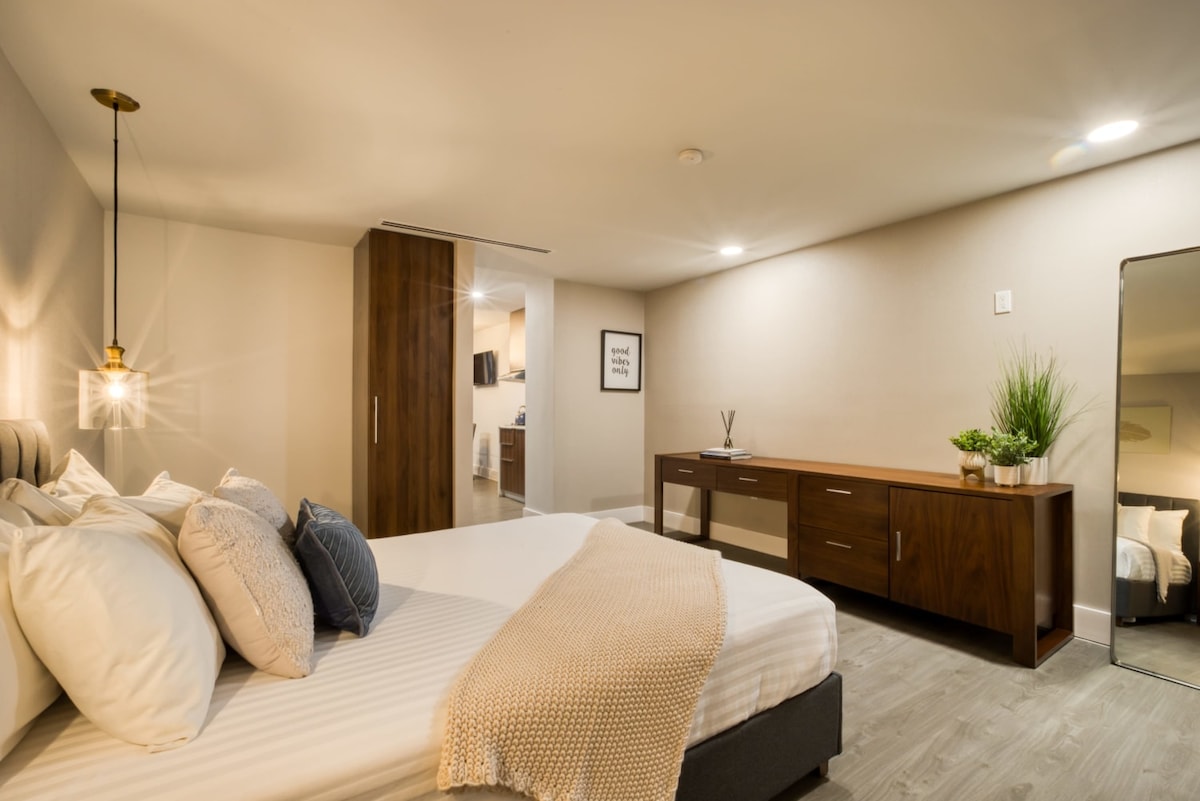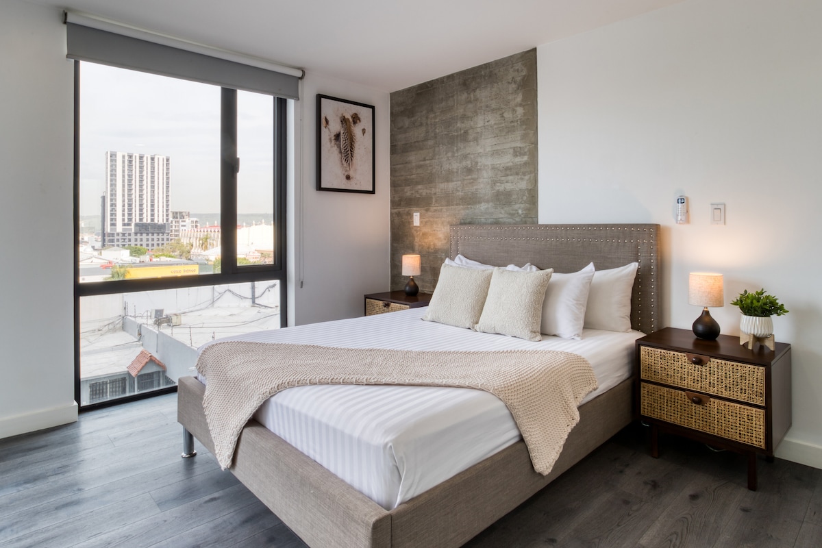 Comfortable and luxurious 3 bedroom apartment in the heart of Tijuana. Located in Zona Rio, just 5 min. from the U.S. Border, close to many restaurants, shopping centers, banks, hospitals and much more. The suite has full kitchen, marble finishes, smart TV, work desk and high-speed internet.