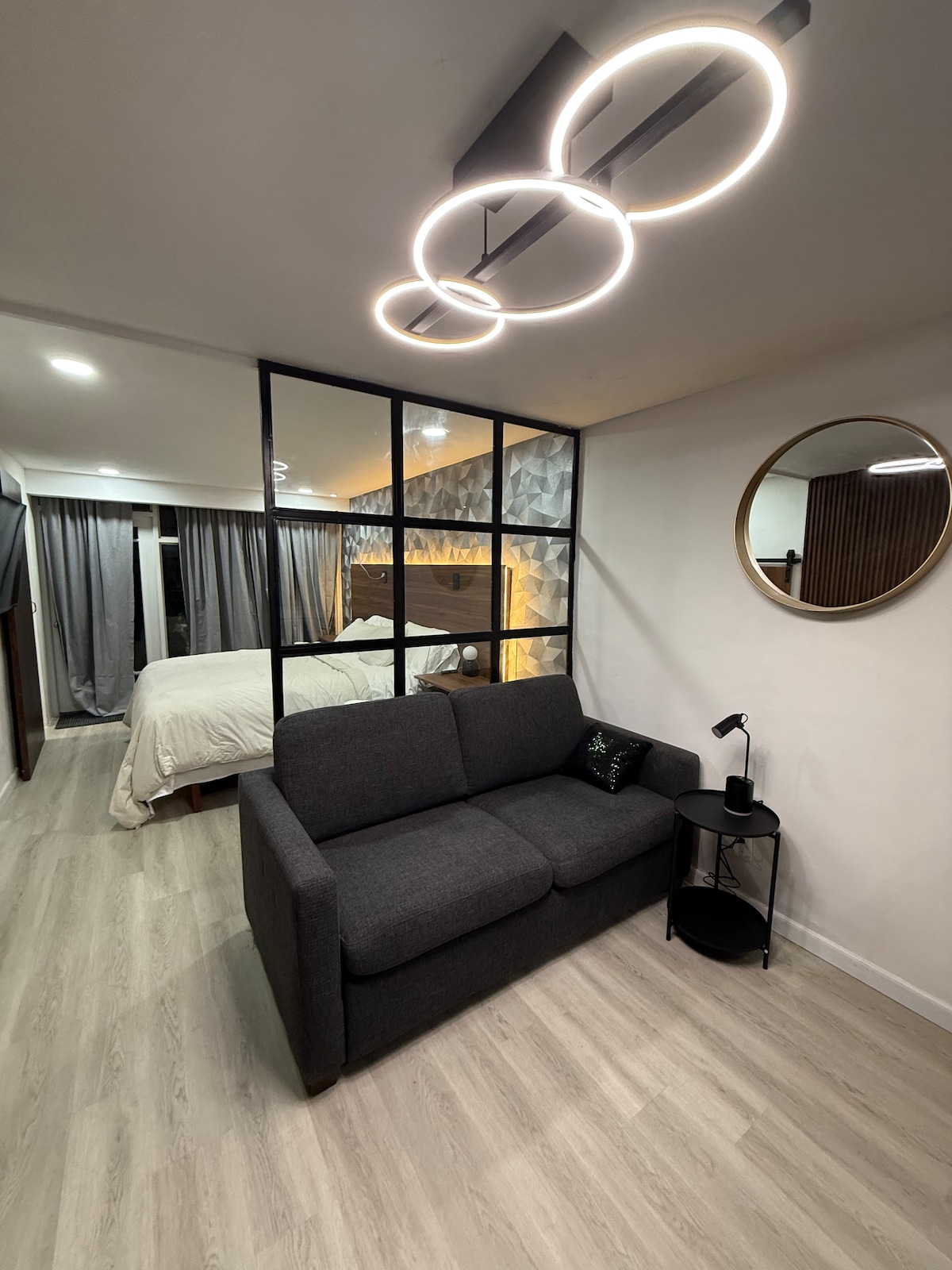 Vive la experiencia de nuestro Loft, diseñado para brindarte comodidad y ubicado en la Zona Dorada de Tijuana en el Blvd. Aguacaliente. Estarás a un paso de las principales áreas: - Zona Rio. - Zona Centro - Aeropuerto. - Garita San Ysidro. - CAS (2 minutos caminando). - Estadio Caliente. Este Loft satisface todas tus necesidades, ya sea que estés aquí por motivos de: - Trabajo. - Turismo Médico. - Escapada Romántica. Ideal para 2 personas con límite máximo de 4 personas (Incluyendo niños).
