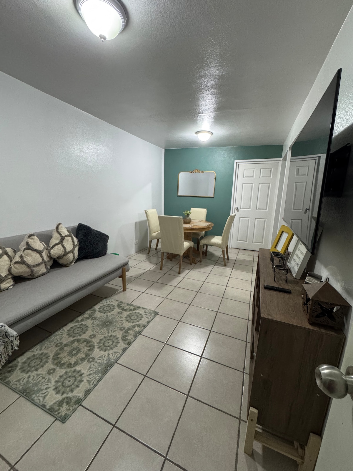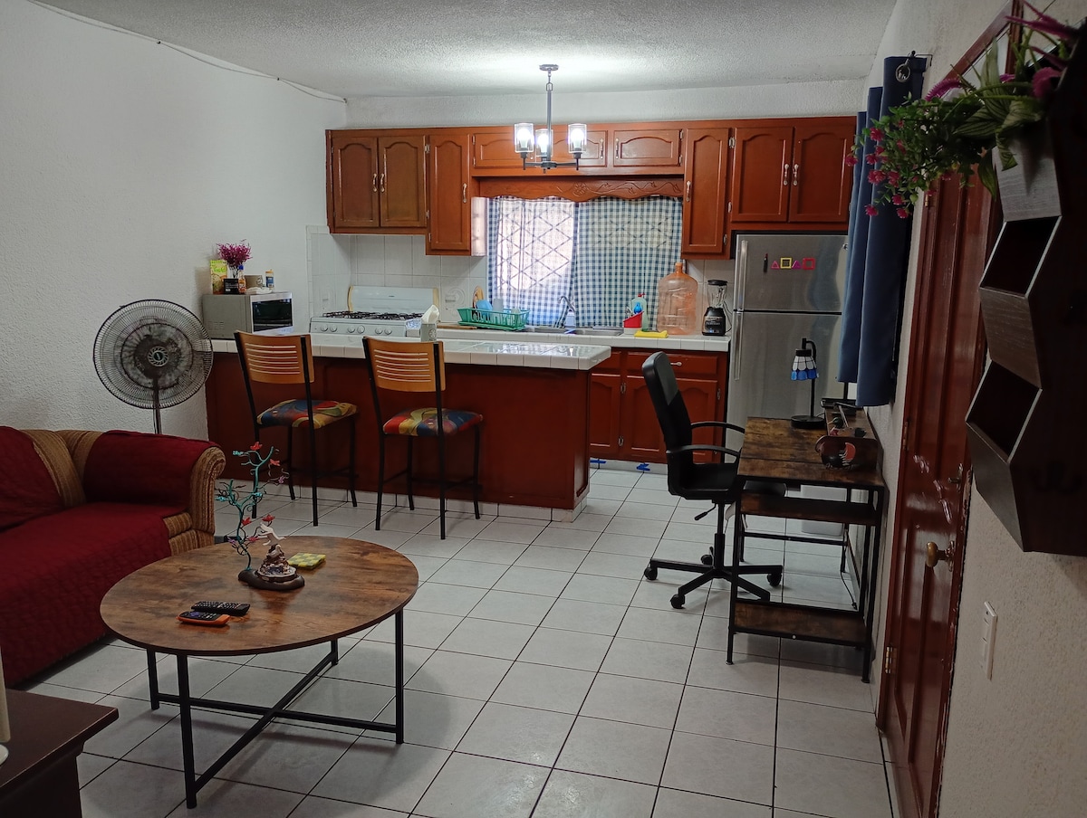 Relájate en este espacio tan tranquilo y elegante. Con todos los servicios privados como cocina, sala, recamara, baño, lavadora, (secadora compartida) entrada privada, ya instalados pueden llegar a cualquier horario, se aceptan visitas, está pequeño pero muy muy cómodo y limpio, a 15 minutos del aeropuerto y 20 a las garitas a USA, a 5 minutos de plazas comerciales, cómo Macroplaza, Monarca, Museo del Trompo, Parque Morelos y zona de restaurantes. Ambiente familiar, No sé renta como motel☺️.