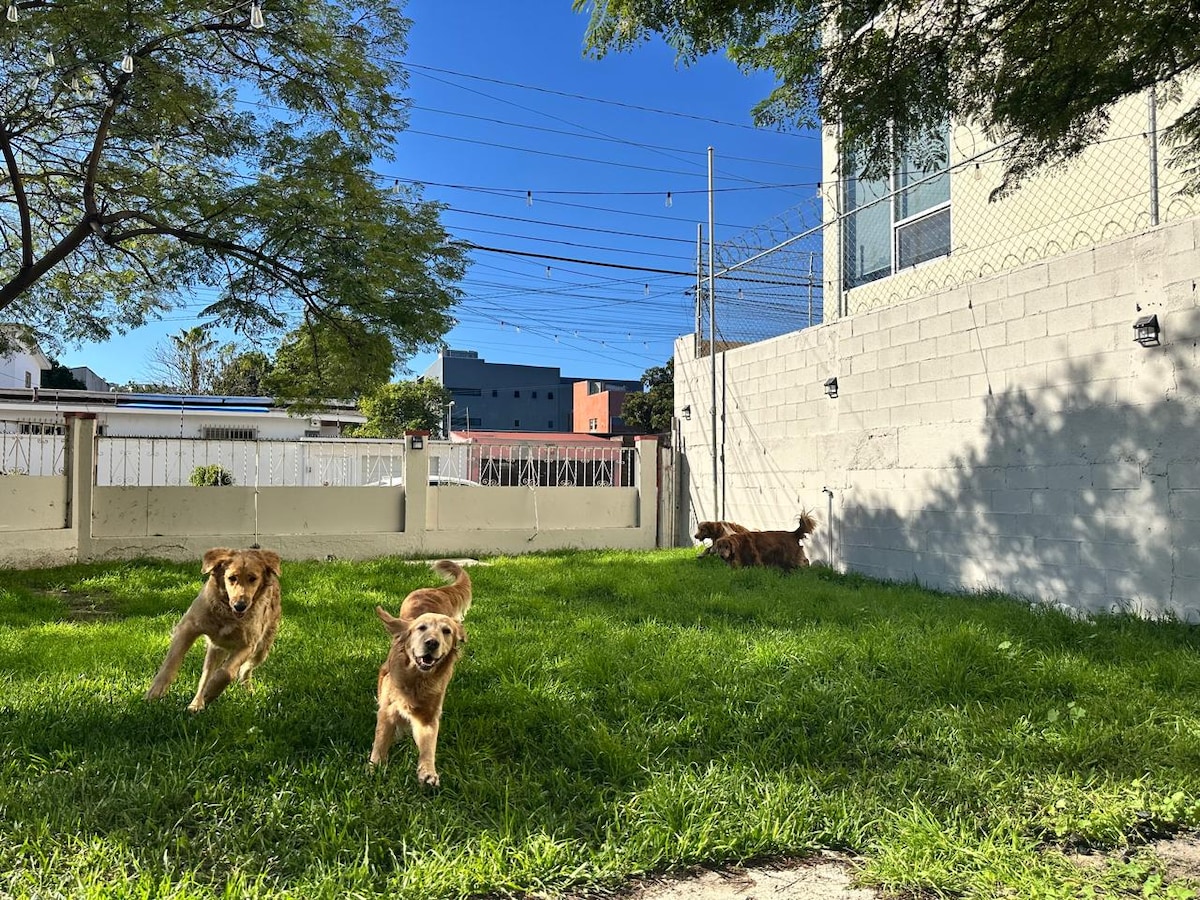 Estamos a 5 minutos del aeropuerto 10 min de consulado 15 min de CAS 12 min de garitas internacionales 5 minutos de centro de alto rendimiento 12 min Medical plaza Traslado a bajo costo al AIRBNB, Consulado, CAS y Garitas (preg flexibilidad) Entrada independiente mediante caja de seguridad Habitación en 3er piso, cuenta con: Cama queen y baño propio Espacio en terraza con mesa de patio TV Smart con Netflix, MAX Acceso a transporte público a 10 mts Realizamos factura