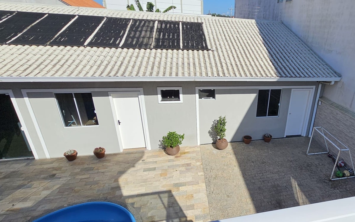 Esta acomodação é perfeita para viagens em grupo, próxima as melhores praias de Santa Catarina, ( acesso de carro). Bem equipada e confortável, com garagem privativa,( não coberta) portão eletrônico. Próxima de supermercado e farmácia. ( acesso com carro ) Bairro residencial próxima ao lago. As praias de Tijucas, Porto Belo, Itapema e meia praia estão próximas mas precisam de carro para chegar. Curta suas férias num local tranquilo perto das melhores praias do Sul do Brasil.