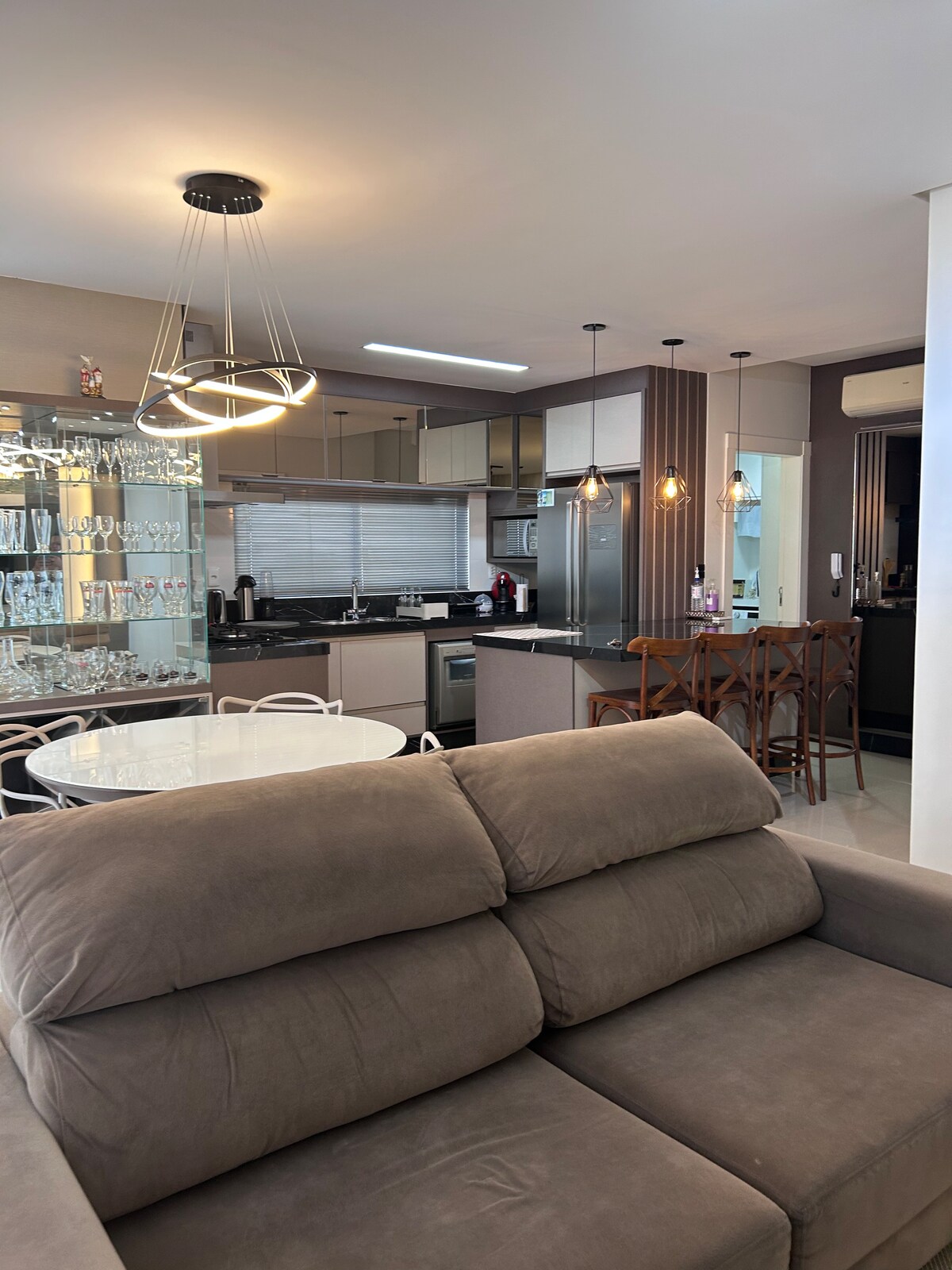 Elegante apartamento 3 quartos, 2 suítes com camas queen, 1 demi-suíte com cama de casal e sofá-cama. Ar condicionado em todos os cômodos, sacada ampla com churrasqueira. Equipado com fogão, coifa, micro-ondas, liquidificador, cafeteira, sanduicheira, máquina de lavar, ferro e secador. Toalhas, roupas de cama, TV smart, WiFi, cozinha completa. Próximo a bares, restaurantes, mercado e farmácia. Localização privilegiada!