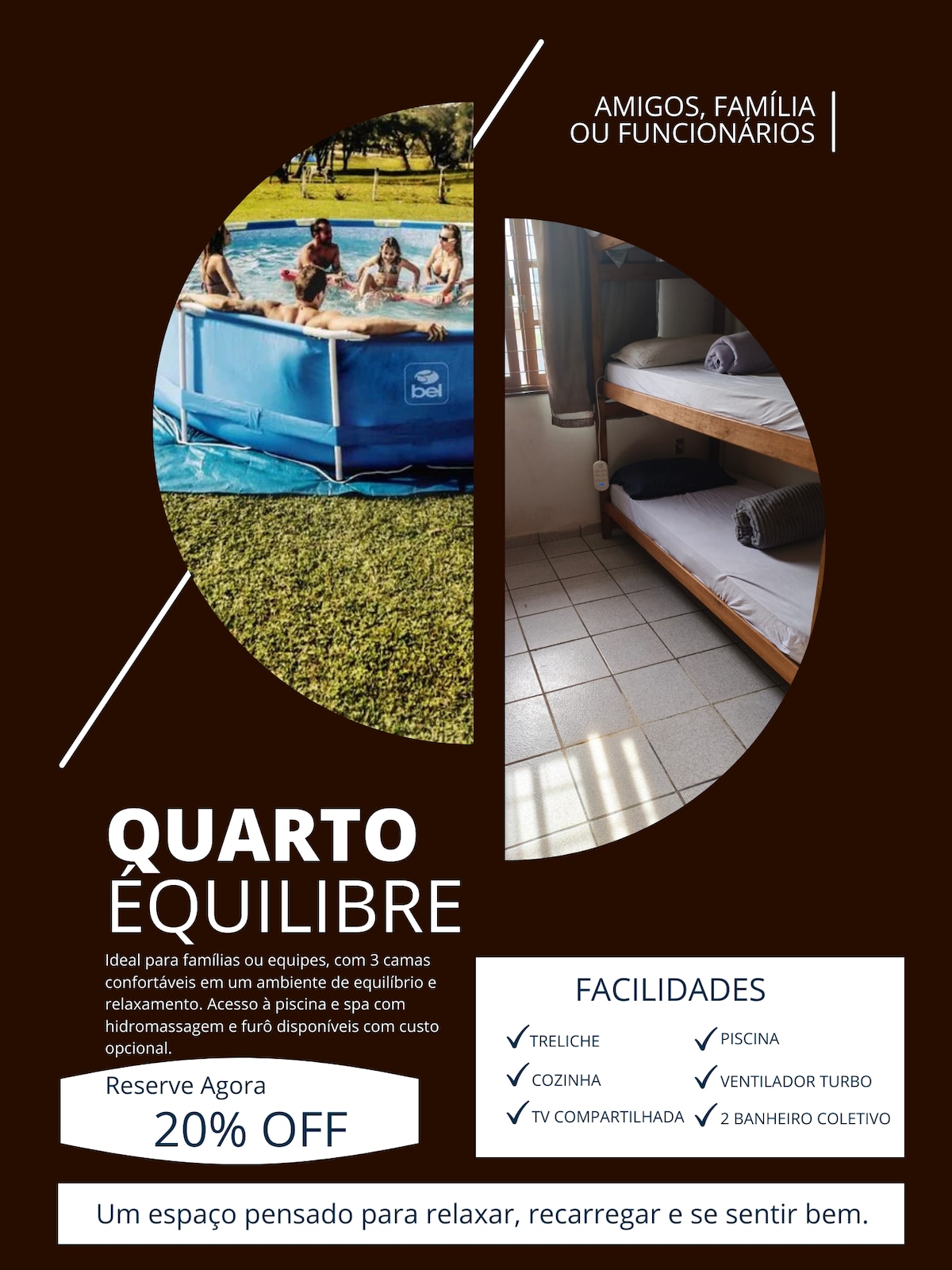 Cama 3B em Quarto Hostel |Até 6 Pessoas•Piscina