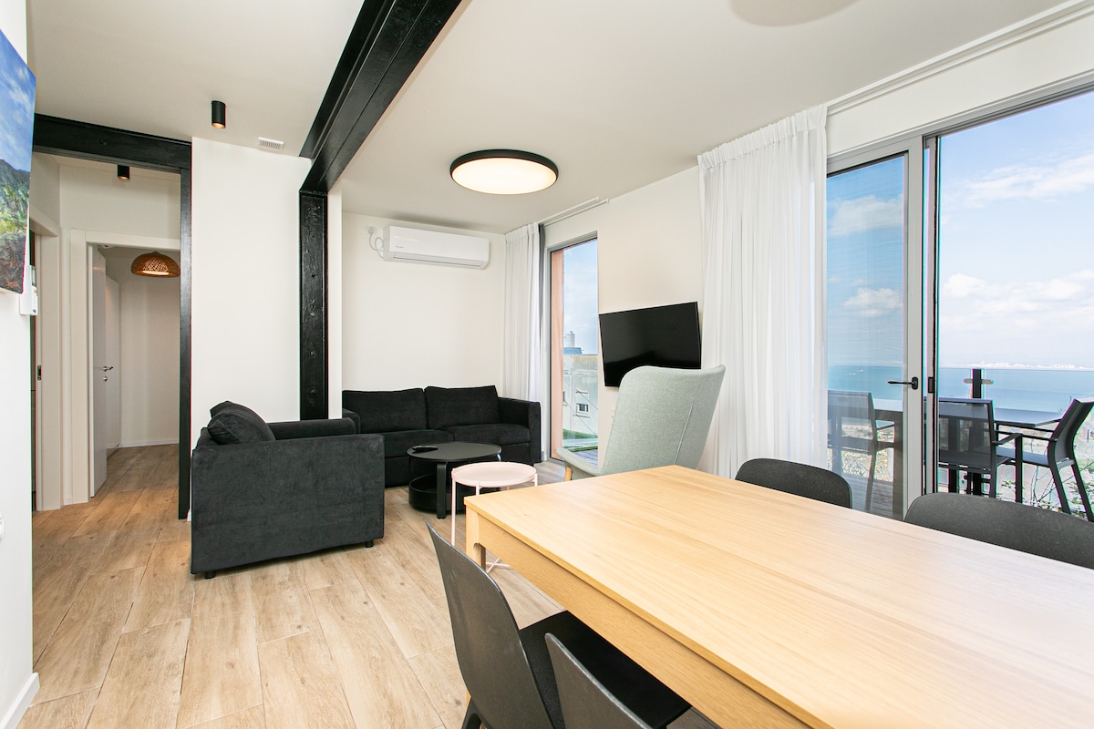 ๐ A spacious, peaceful Haifa apartment with breathtaking views ๐๏ธ. Quiet area, perfect for relaxation ๐ง. Private patio with amazing scenery ๐ . High-speed WiFi ๐ถ. Large living room with foldout couch, 85" Smart TV, and AC ๐๏ธ๐บ. Comfortable bedroom for restful sleep ๐๏ธ. Fully equipped kitchen ๐ณ. Big bathroom with a laundry machine ๐งบ๐ฟ. Bottom floor. Your tranquil getaway awaits! ๐ Guests' Top Choice! ๐