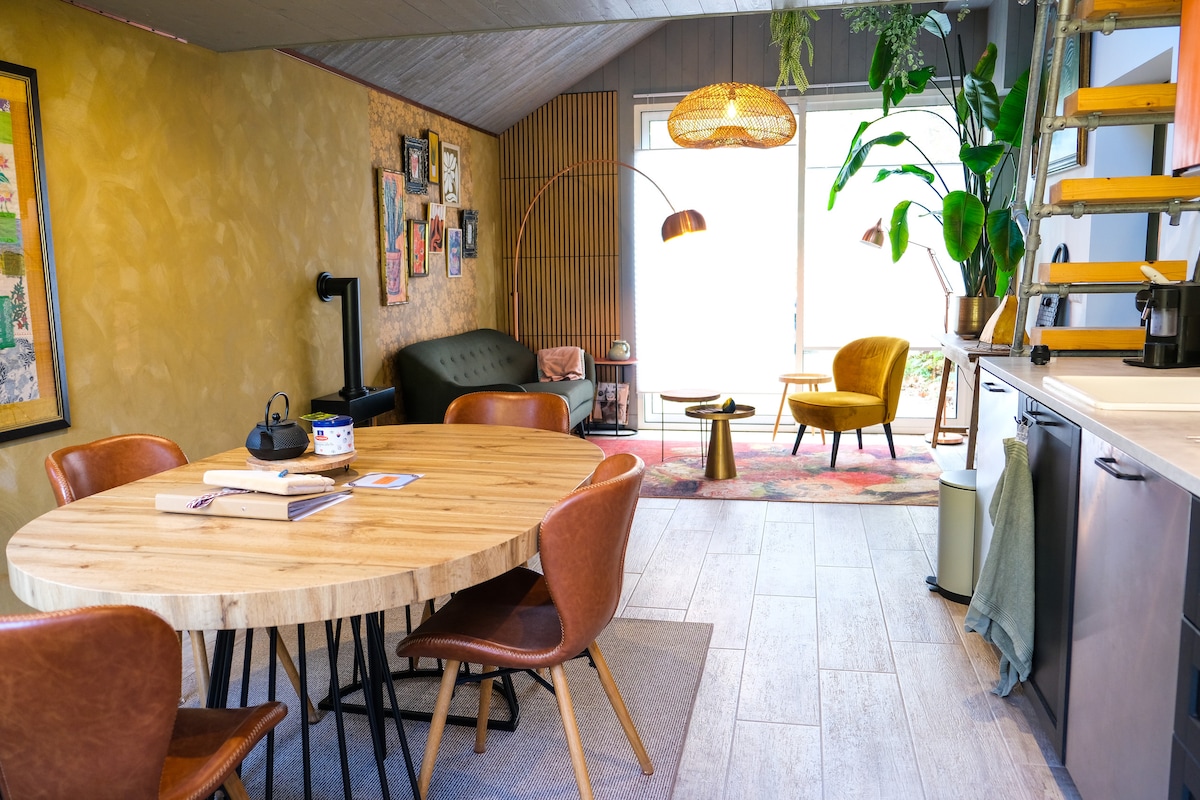 Er even tussenuit onder de sterrenhemel. Dit Tiny house voor max. 4 pers. staat pal aan het meer en beschikt over een eigen steigertje en bbq en vuurplaats. Het uitzicht is dus fenomenaal. Er zijn 2 slaapkamers, een woonkamer/open keuken met gasfornuis, koel/vriescombinatie, koud stromend water (d.m.v. een tank), opbergruimte, terras(meubilair) en er is de beschikking over een roeiboot en 2 kano's. De hippe privébadkamer, privétoilet en afwasplek bevinden zich op 60 meter loopafstand.