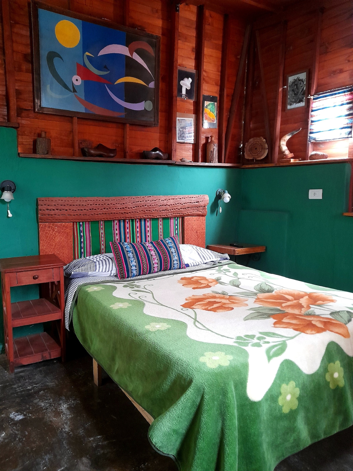 La cabaña está rodeada de cerros.un lugar tranquilo..decorada estilo campo con algunos objetos del lugar..un lugar ideal para disfrutar de los cerros ....