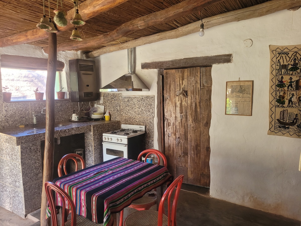 Es una casa ideal para personas que buscan estar confortables en una zona rural y tranquila. La casa está a 3,5 km del pueblo de Tilcara. El espacio cuenta con un entrepiso, una habitación (ambas con camas de dos plazas), 2 baños , living con dos sillones y tv (uno de ellos se hace cama), una cocina amplia y equipada. En la zona exterior hay parrilla, horno de barro y un mesón para comer al aire libre. En la casa y sus alrededores vive Capitán, un gato amoroso.