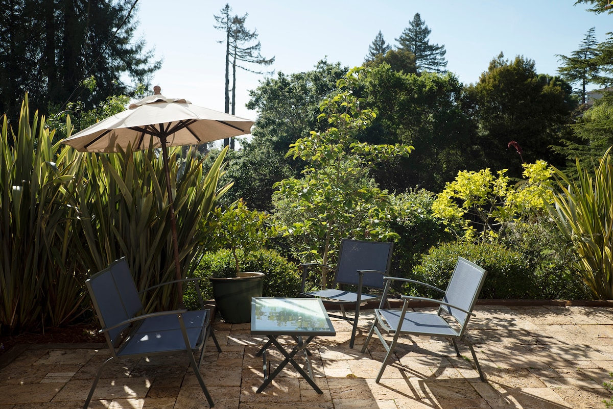 Private garden guest room with separate entrance in North berkeley hills. Close to UC, LBL, Tilden park. Bus to BART or Uber to anywhere in the Bay Area. Safe and quiet location. Garden and patio. The private room has a double bed which is slightly shorter and more narrow than a queen size bed. We offer a mini fridge and complementary coffee. No kitchen access. The room , bath and entry are entirely private. It is not a stand alone cottage and you will hear some house noises. Thank you. 😊