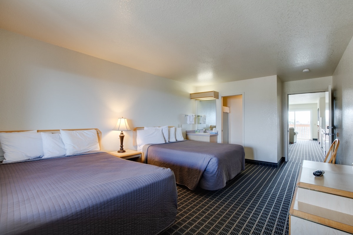 酒店客房,配备两张标准双人床和小厨房。无需缴纳清洁费!