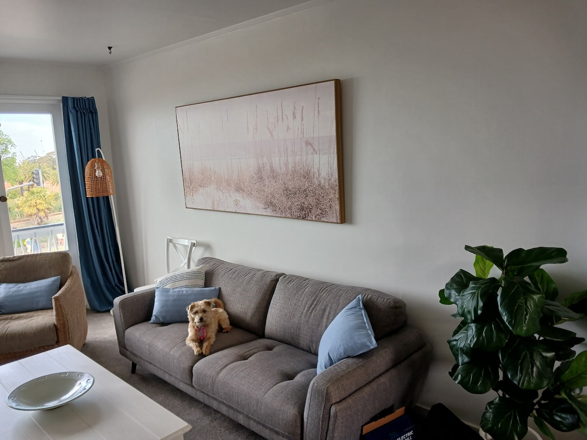 A stunning modern apartment space located within walking distance of the beach and town centre. Boasts two comfortable bedrooms with a super king bed and a queen bed respectively. A smart tv dominates the luxurious lounge space. Includes a full kitchen facility with dishwasher and spacious fridge. Laundry available on request Located in a peaceful quiet area with a fantastic outdoor living space, you could easily settle in here for a couple of days or even a week and feel right at home .