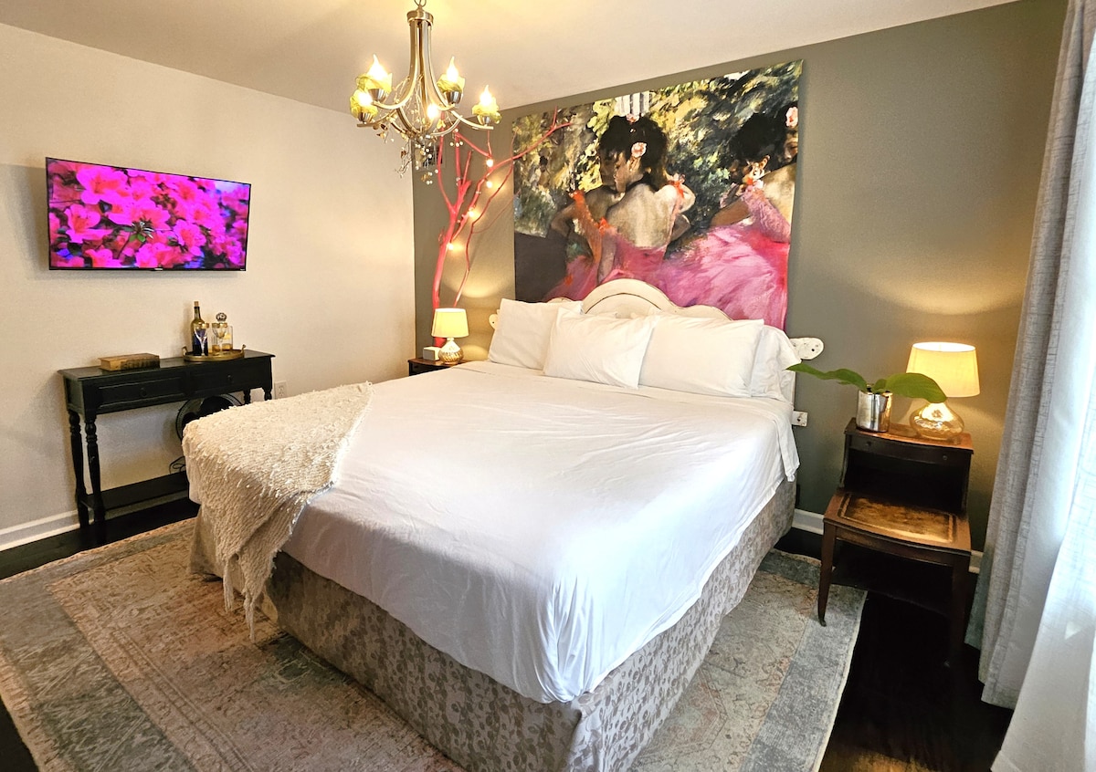 "In all our travels, we have never stayed in a more delightful and charming accommodation." "absolutely immaculate and beautifully decorated." "At three times the price, it would still be a bargain." 1 mile to Tulane U, 3 mi to Bourbon Street/French Quarter/WWII Museum, 2 mi to St Charles Streetcar, 3 mi to Garden District King bed En-suite bath Large TVs Quiet, safe, Uptown between the universities and the French Quarter Balcony Free parking Fast wifi Central ac/heat