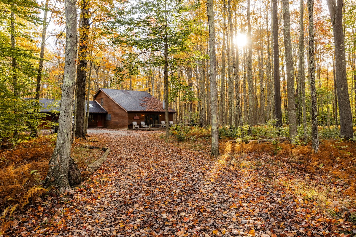 Welcome to Driftland Cabin, a charming, hand-crafted log home nestled on nearly 3 acres of lush, wooded land in the gated Old Timberline community with direct access to Dolly Sods. This inviting cabin offers rustic charm and modern amenities. The open living area with a cozy wood stove is perfect for relaxing and spending quality time with loved ones. On the rear deck, a sauna, hot tub, gas fire table and pizza oven are available. We provide a kayak for guests to enjoy on nearby Sand Run Lake.