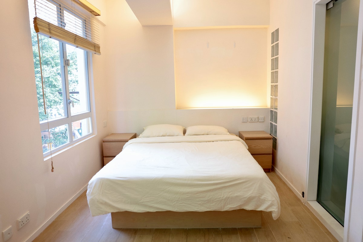 Welcome to my chic and spacious apartment in the heart of Wanchai! This 400 sqft one-bedroom gem is bathed in natural light, creating a bright and vibrant atmosphere. Located just steps away from the subway station, traditional market, and trendy bars, cafes, and restaurants, it's the perfect base for exploring the city. With a sleek minimalistic design, full kitchen amenities, and the ability to accommodate up to three guests, this apartment offers both style and convenience.