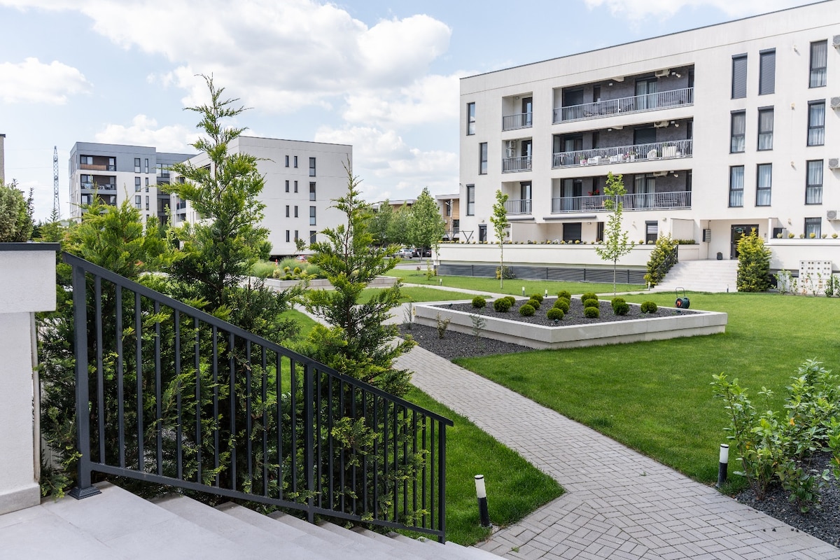 Apartamentul se afla intr-o zona centrala, intr-un complex rezidential nou la 1.3km de Piata Unirii. O plimbare usoara de 10 minute va aduce acolo, fiind locul perfect pentru a savura un ceai, o cafea sau un Aperol la numeroasele terase. Unul dintre cele mai populare locuri de shopping din oras, Iulius Mall, se afla la 1.2km si poate fi ajuns dupa o scurta plimbare. Locul de parcare in garajul subteran este inclus pentru a va putea bucura din plin de sejurul sau sedera prelungita.