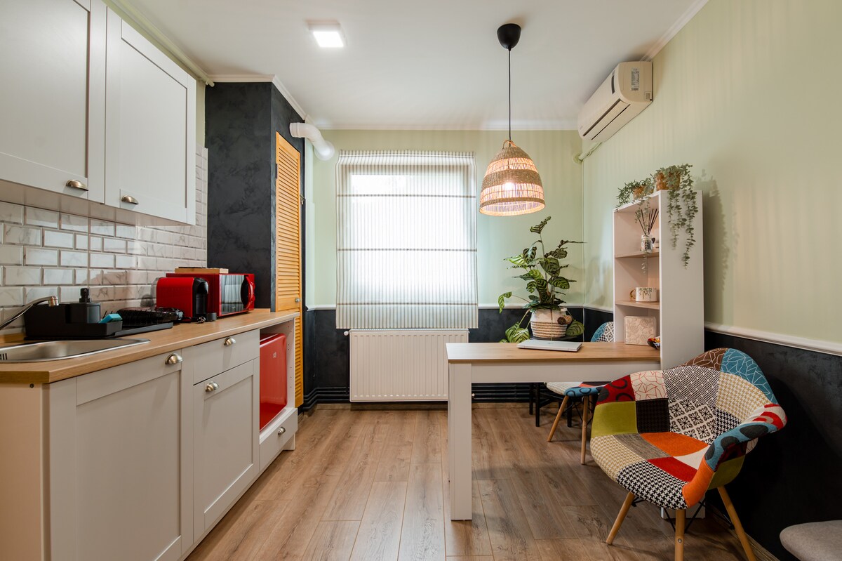 Bine ai venit la Studio 7, un refugiu urban la doar 10 minute distanță de centrul orașului. Situat într-un bloc vechi din perioada comunistă, interiorul nostru modern te va surprinde cu un design aparte, care combină confortul contemporan cu farmecul istoric. Fiecare detaliu este atent ales pentru a crea o atmosferă primitoare, iar finisajele elegante îți vor oferi o experiență unică. Studio 7 este locul perfect pentru a explora orașul și a te relaxa după o zi plină de aventuri.