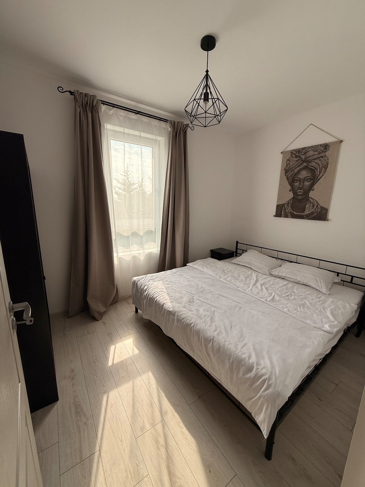 Apartamentul este situat aproape de centru si iulius mall, facultatea de medicina ,o zona linistita de case . nou renovat ,parter , - Parcare gratuită pe stradă - pat dublu -clima -masina de spalat -uscator de haine electric -fier de calcat haine -frigider - smart tv, cablu tv ,Netflix -internet -chicineta ,dotata ( vesela ,cafetiera , plita pe inductie.) -incalzire colterm (reteaua se stat). -baie cu dus se asigura lenjerie , hartie igienica ,sampon ,sapun. -sunt acceptate animale de companie