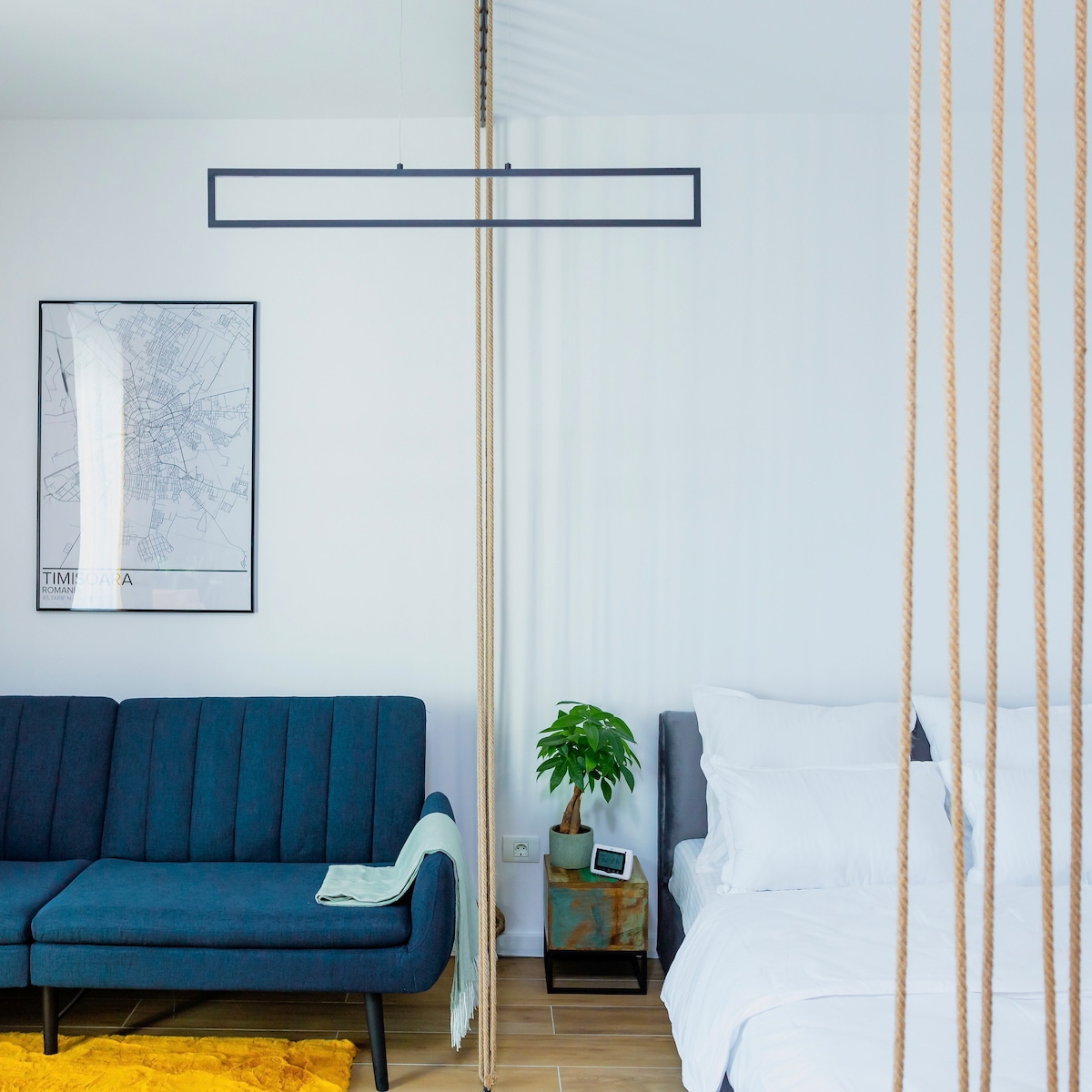 Apartamentul este situat in Timisoara, Bld. Liviu Rebreanu, intr-un bloc de apartamente nou-nout. Finalizat in Decembrie 2020, apartamentul poate gazdui 4 persoane si este situat pe o strada animata, cu diferite magazine, restaurante, piscine, sala de gimnastica (Smartfit 2), cluburi si un stadion principal de fotbal. Imobilul este situat la 3,5 km de zona centrala. Apartamentul include un pat (160*200), in timp ce coltarul extensibil poate gazdui, de asemenea, doua persoane.