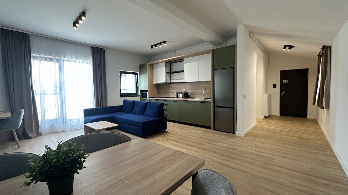 🌐 Te invit să descoperi confortul și eleganța acestui apartament primitor! • Bucătărie complet echipată cu cafea și ceai incluse, plus ustensile de gătit. • Living spațios cu TV smart, WiFi rapid și o zonă de lucru ideală. • Dormitor confortabil cu lenjerii de calitate și spațiu de depozitare. • Baie modernă cu duș walk-in, papuci de baie și produse de igienă. • Parcare gratuită, stație de încărcare pentru mașini electrice și zonă liniștită. 🎉 Rezervă acum și bucură-te de ședere!