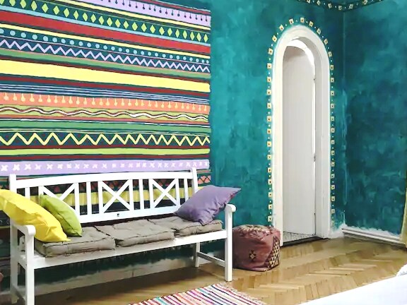 A good energy and happy colorful life, a luminous cozy chill out place where you can enjoy your coffee or tea on the or just welcome the day. Each room is part of a story, full of lively colors and good vibes The dream catcher above the bed will guard your sleep in the colorful bedroom. A cozy hideout guarding your dreams ultracentrally located. :) P.S. All our properties have individual climate systems both AC cooling and heating and independent central heating .
