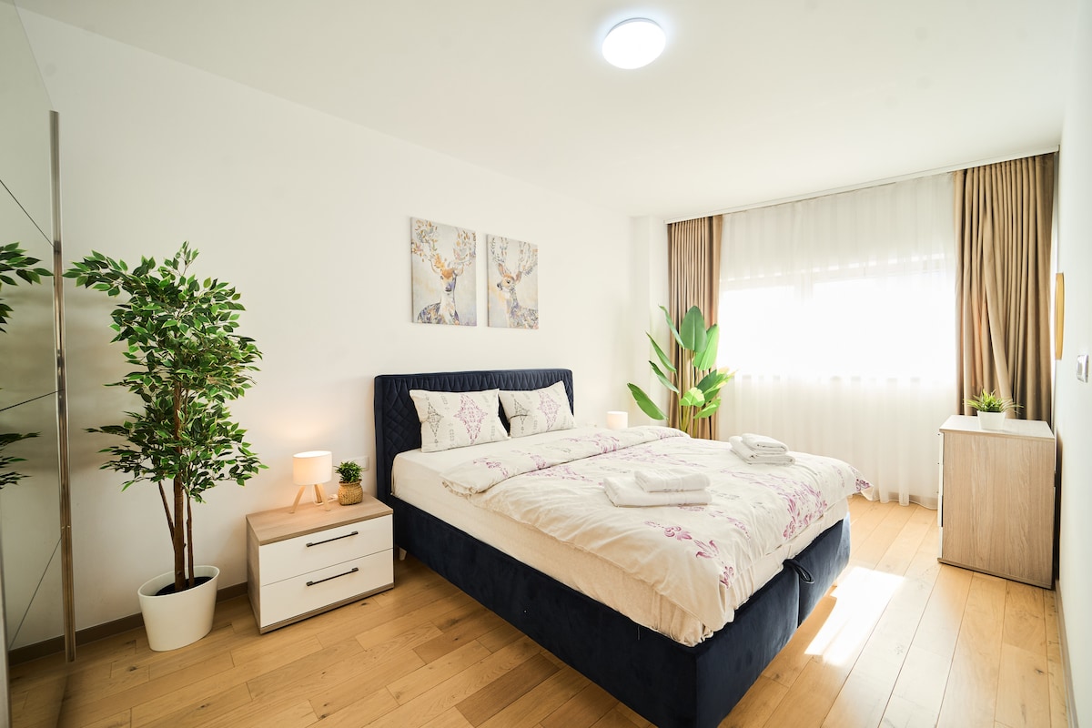 Welcome to our beautiful penthouse located on the banks of the Bega River in Timisoara in a quiet and peaceful area, away from the hustle and bustle of the city center, yet still within easy reach of all the main attractions. The penthouse has a large terrace, which offers breathtaking views of the river and the surrounding area. You can enjoy a morning coffee or an evening cocktail. Whether you're in Timisoara for business or pleasure, our penthouse is the perfect choice for your stay.